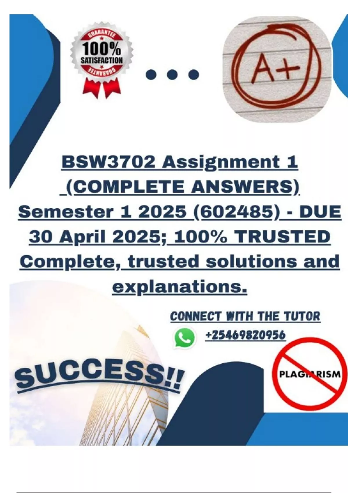 ,BSW3702 Assignment 1(COMPLETE ANSWERS) Semester