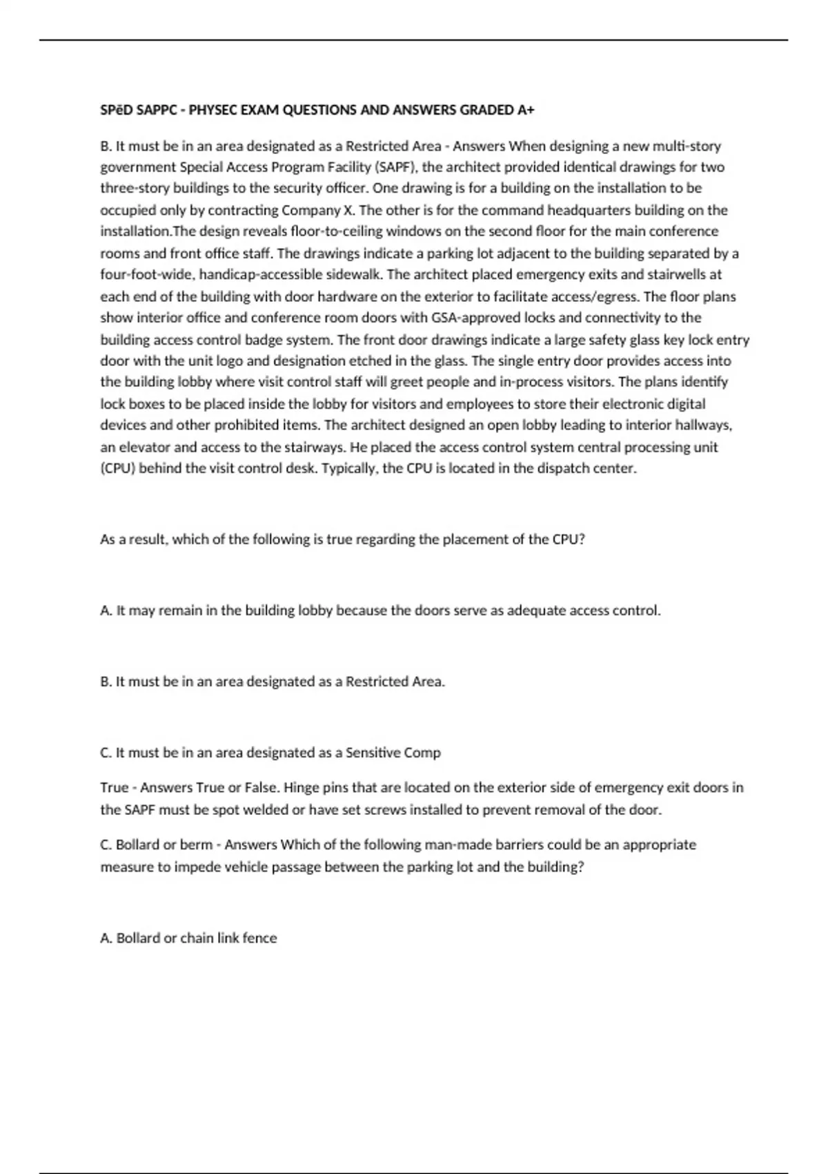 B. It must be in an area designated as a Restricted Area - Answers When designing a new multi-story