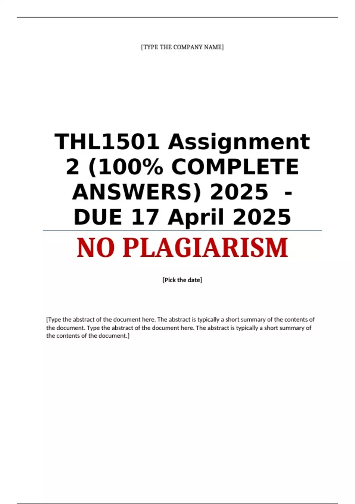 THL1501 Assignment 2 (100% COMPLETE ANSWERS) 2025 (754430) - DUE 17 April 2025