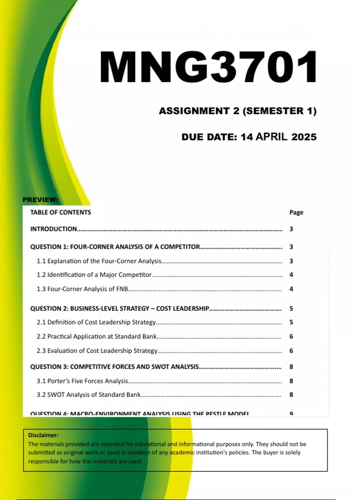 MNG3701 Assignment 2 (Answers) Semester 1 (2 in 1) - DUE 14 April 2025