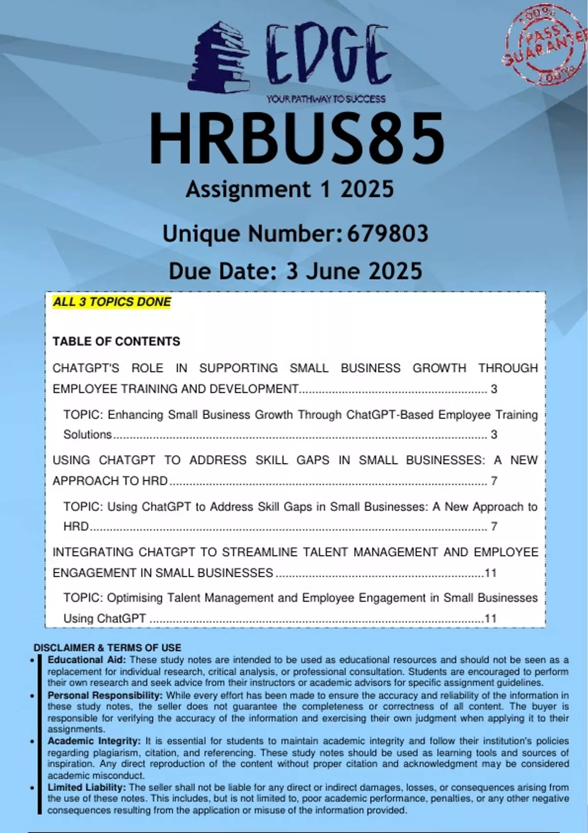 these study notes, the seller does not guarantee the completeness or correctness of all content. The buyer is