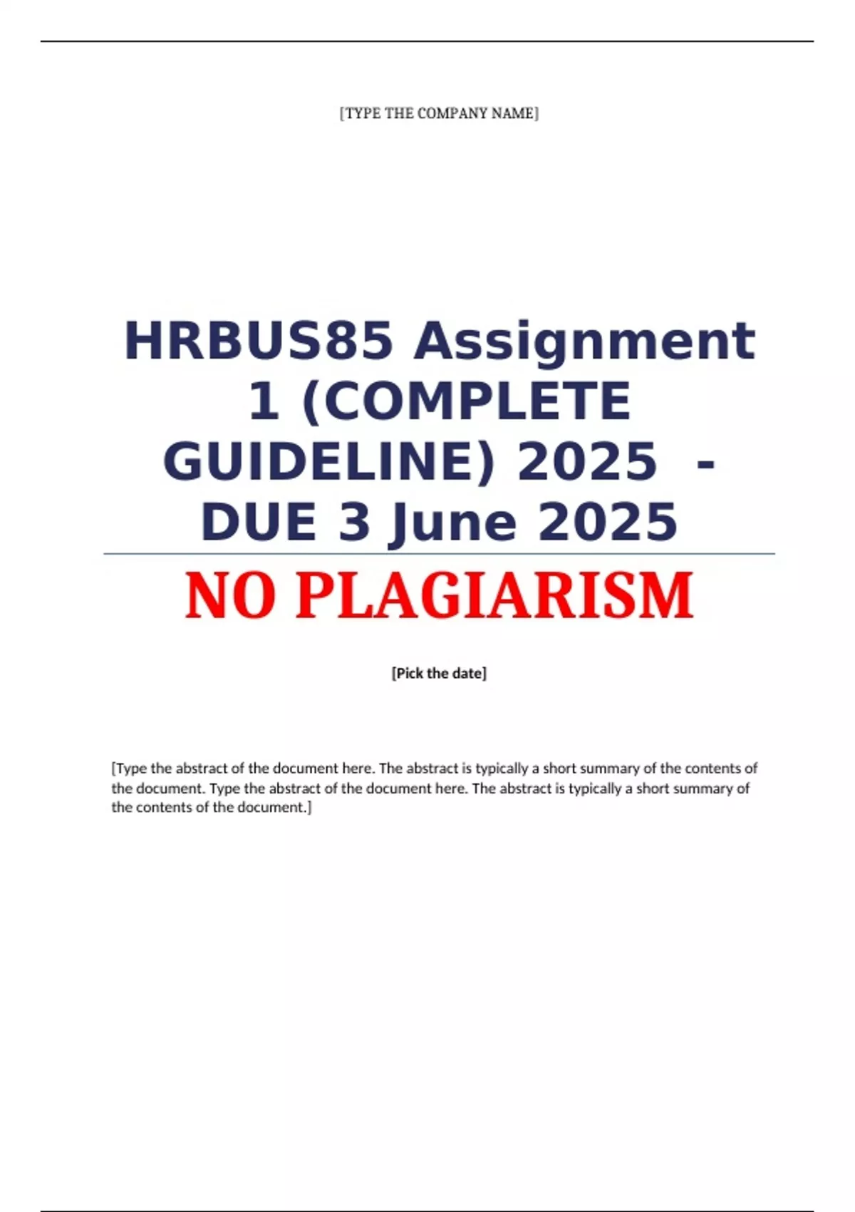 HRBUS85 Assignment 1 (COMPLETE GUIDELINE) 2025 (679803) - DUE 3 June 2025