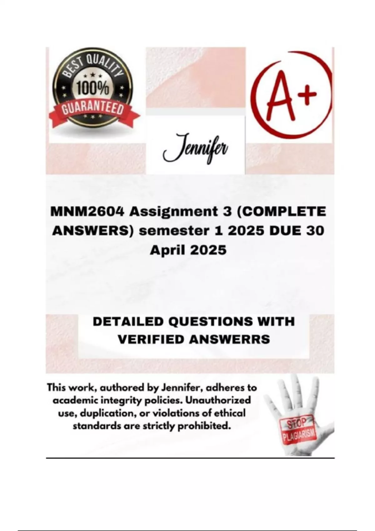 MNM2604 Assignment 3 (COMPLETE ANSWERS) semester 1 2025 DUE 30 April 2025; 100% correct solutions and explanations.