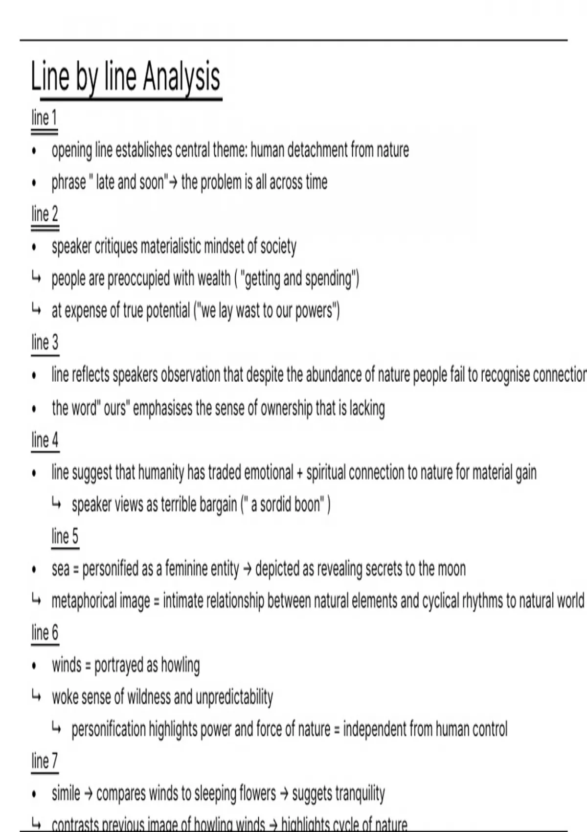This comprehensive study resource provides a line-by-line analysis and in-depth commentary on William Wordsworth’s powerful sonnet “The World is Too Much With Us”. Ideal for high school or college English students, this guide explains poetic devices, themes, tone, structure, and Romantic characteristics in detail. What’s included in this document: Full line-by-line analysis with poetic techniques (simile, metaphor, personification) Clear breakdown of Romantic elements: reverence for nature, emotional intensity, and anti-materialism Detailed exploration of the poem’s tone, structure, and theme Glossary of key terms and vocabulary Exam-style activities: poet’s intention, tone, symbolism, and mythological references Commentary on Wordsworth as a Romantic poet Perfect for: Exam preparation and poetry essays Deepening understanding of Romantic poetry Students analyzing human disconnection from nature and industrialization This guide is your go-to companion for unpacking one of Wordsworth’s most critical reflections on society and nature, making complex ideas accessible and memorable.