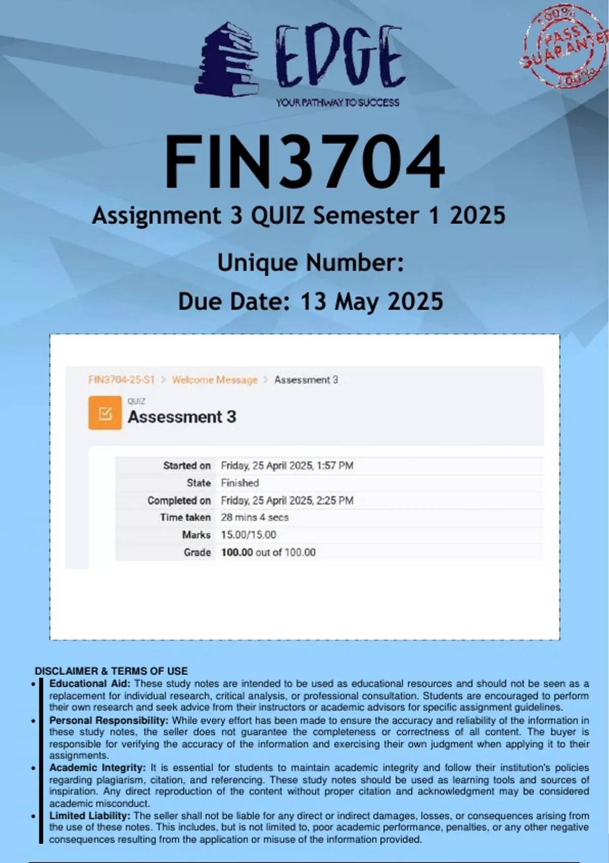 FIN3704 Assignment 3 (ANSWERS) Semester 1 2025 - DISTINCTION GUARANTEED