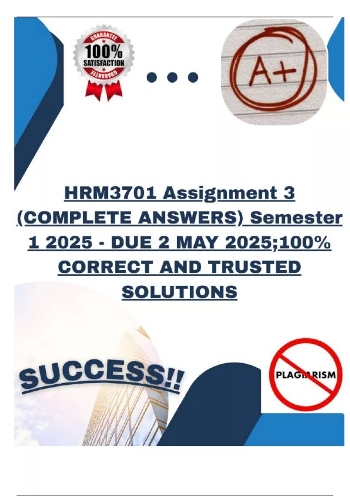 ,HRM3701 Assignment 3 (COMPLETE ANSWERS) Semester 1 2025 - DUE 2