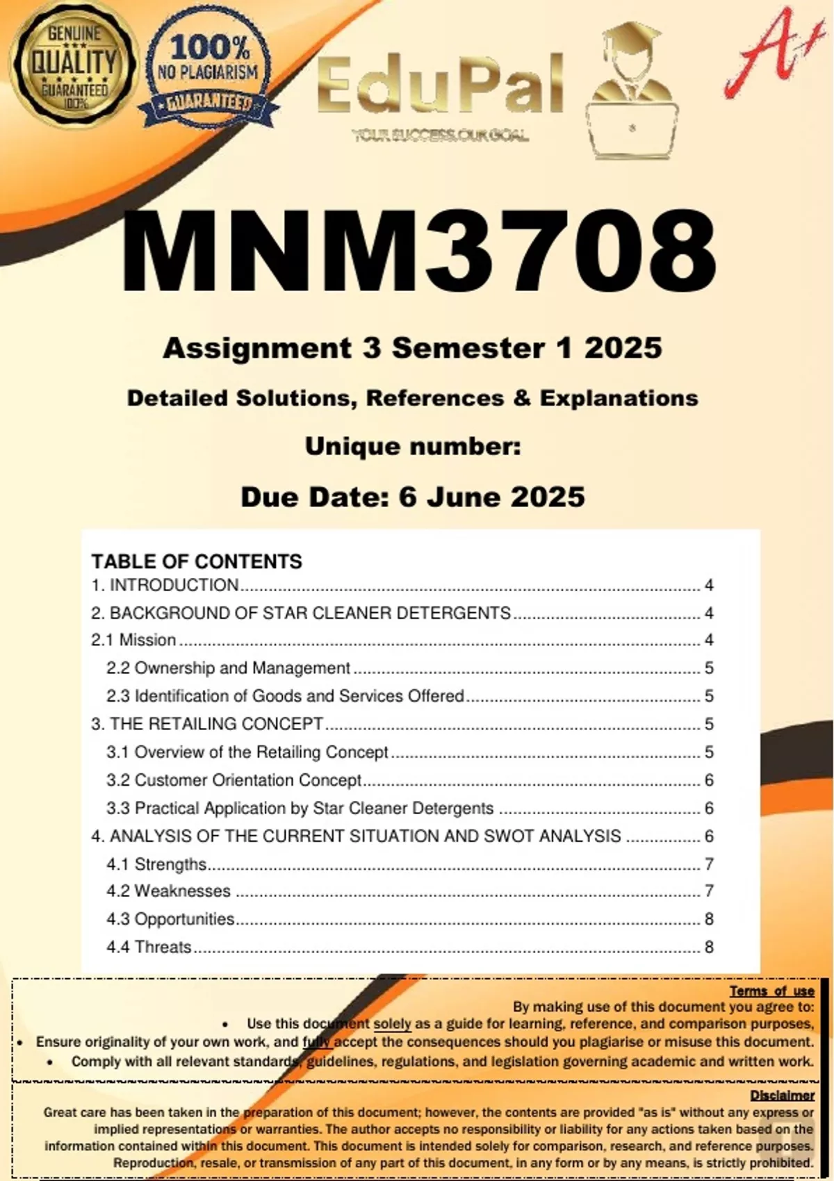 MNM3708 Assignment 3 PORTFOLIO (COMPLETE GUIDELINE) Semester 1 2025 - DUE 6 June 2025; 100% TRUSTED Complete, trusted solutions and explanations. For assistance, Whats-App 0.6.7-1.7.1-1.7.3.9. Ensure your success with us....
