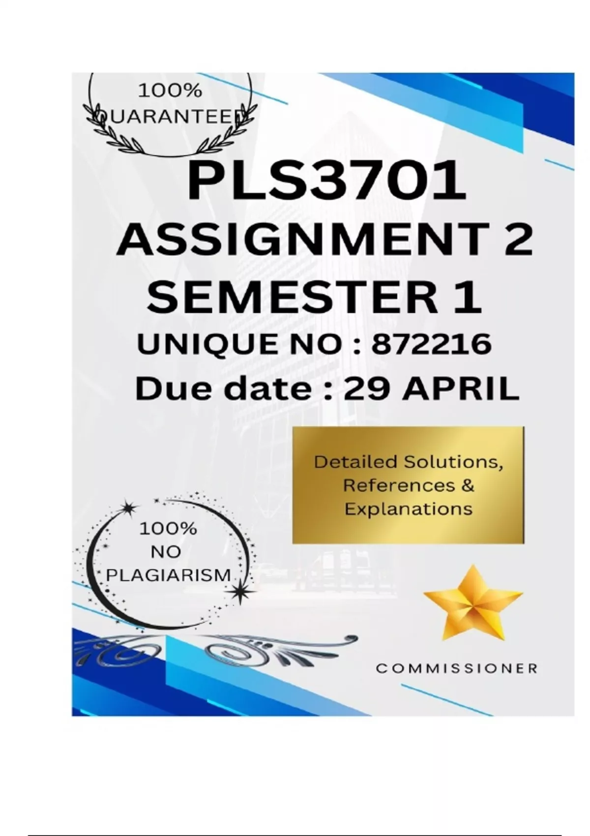 PLS3701 Assignment 2 (COMPLETE ANSWERS) Semester 1 2025 (872216) - DUE 29 April 2025; 100% TRUSTED Complete, trusted solutions and explanations.