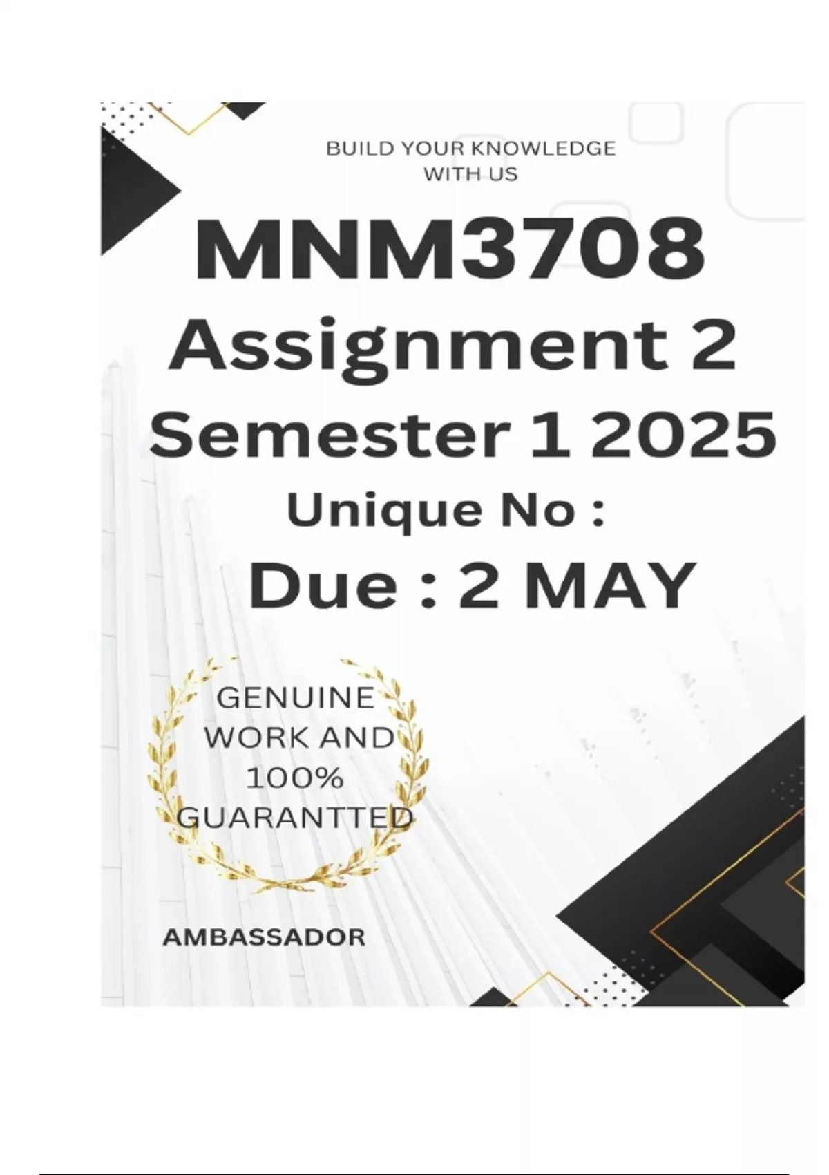 MNM3708 Assignment 2 (COMPLETE ANSWERS) Semester 1 2025 - DUE 2 May 2025
