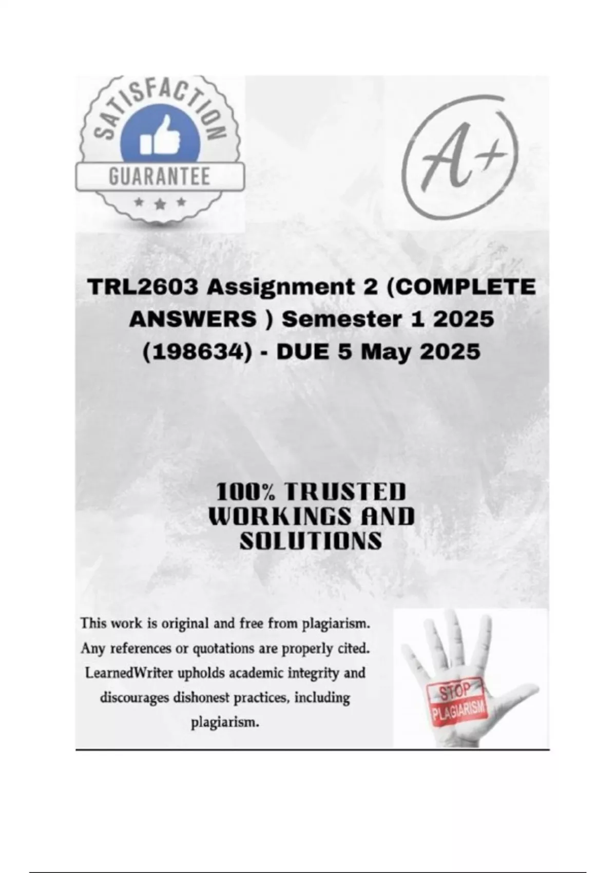 TRL2603 Assignment 2 (COMPLETE ANSWERS ) Semester 1 2025 (198634) - DUE 5 May 2025;100% trusted ,comprehensive and complete reliable solution with clear explanation