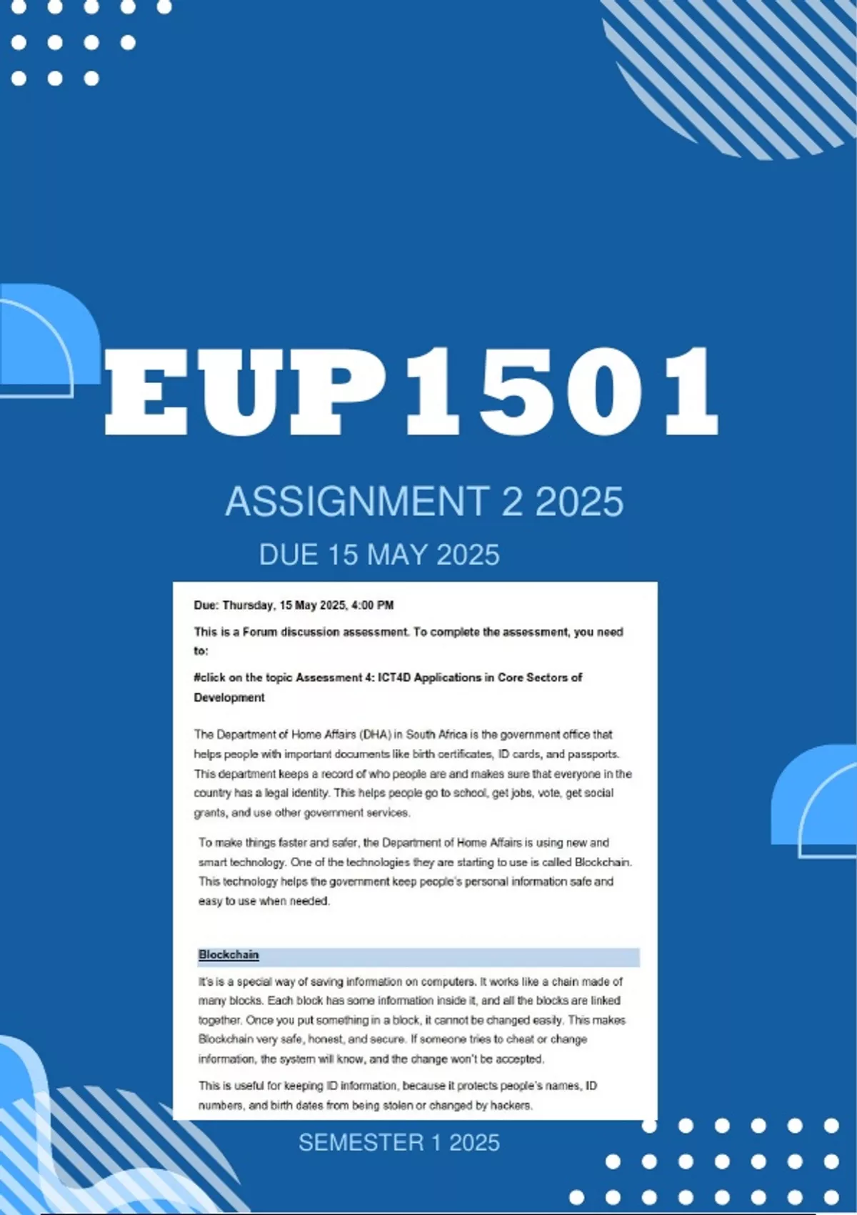 DUE 15 MAY 2025