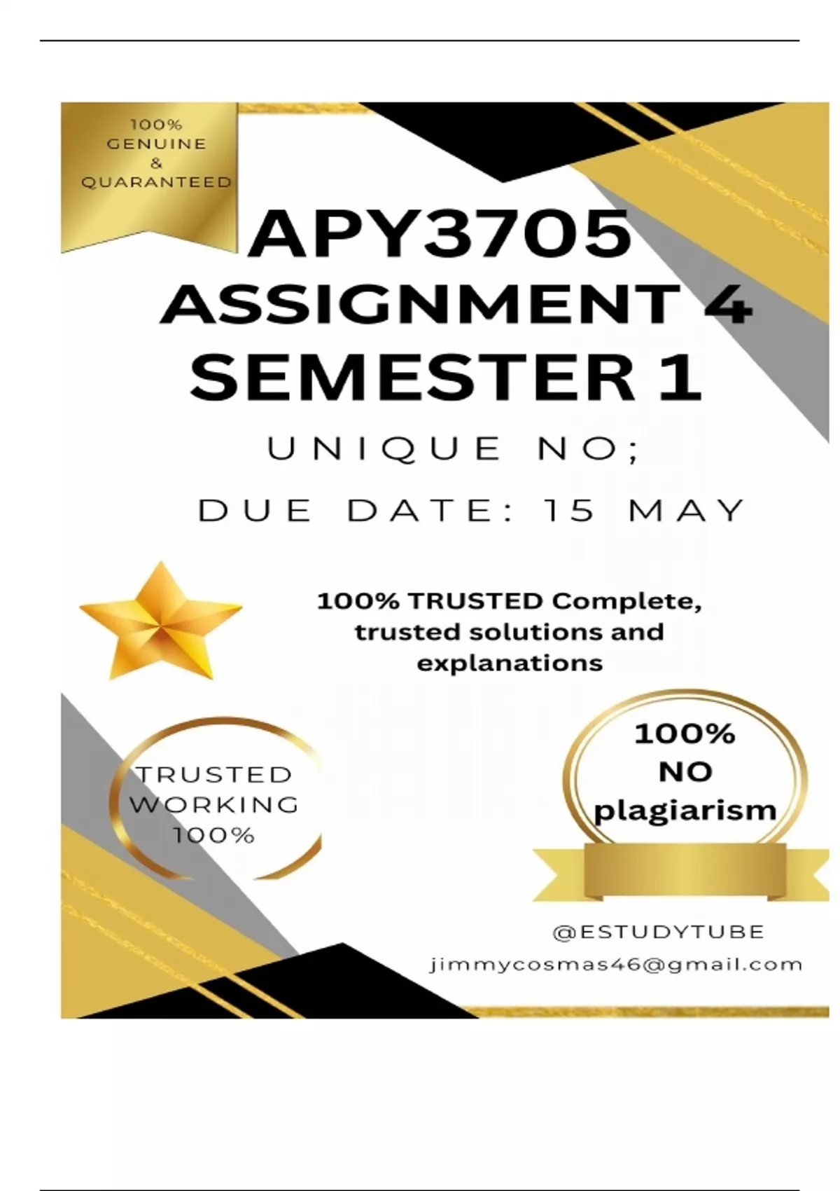 APY3705 Assignment 4 PORTFOLIO (COMPLETE ANSWERS) Semester 1 2025 - DUE 15 May 2025; 100% TRUSTED Complete, trusted solutions and explanations.