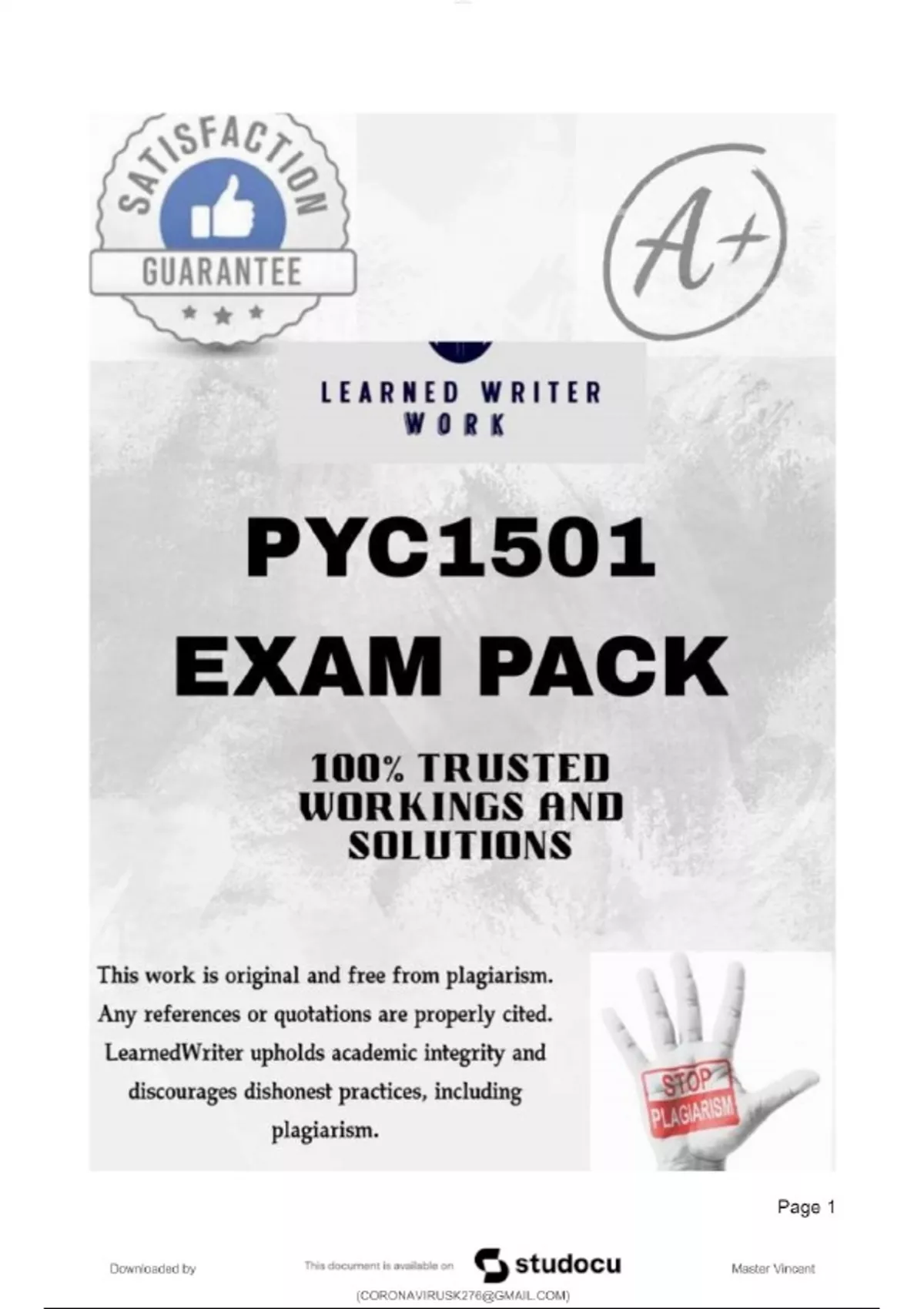 PYC1501 EXAM PACK [QUESTION AND CORRECT