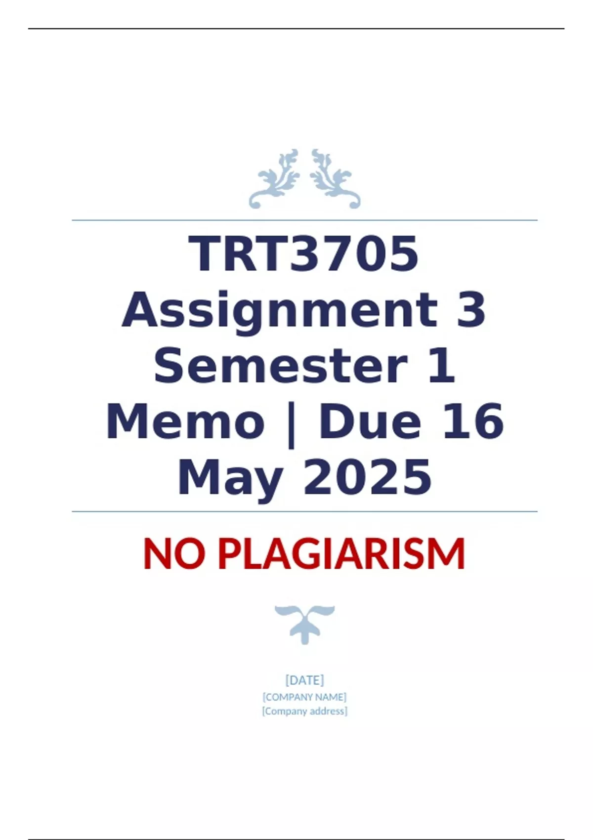 TRT3705 Assignment 3 Semester 1 Memo. All questions fully answered
