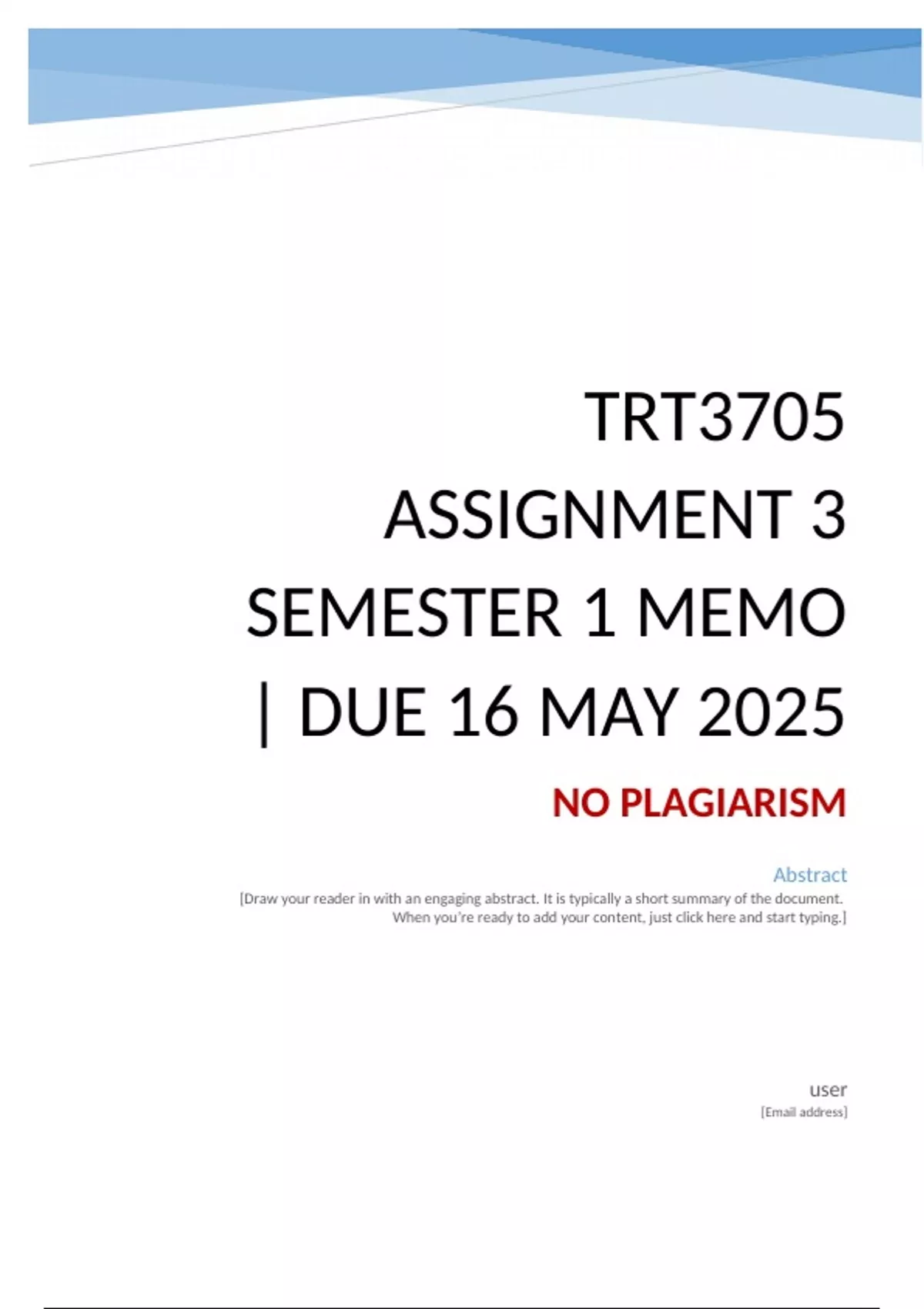 TRT3705 Assignment 3 Semester 1 Memo. All questions fully answered