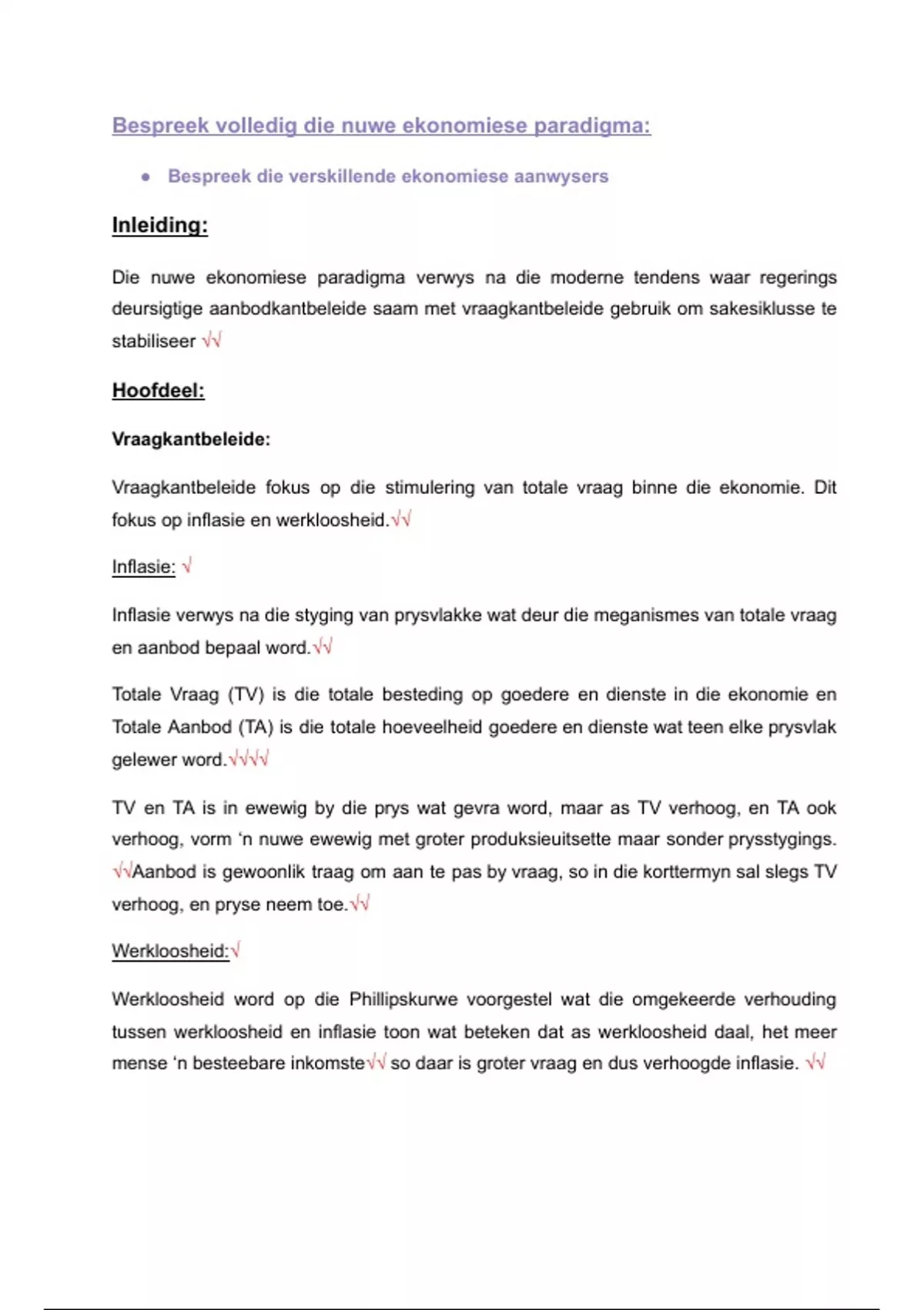 Alle moontlike langvrae vir Graad 12 ekonomie vraestel 1
