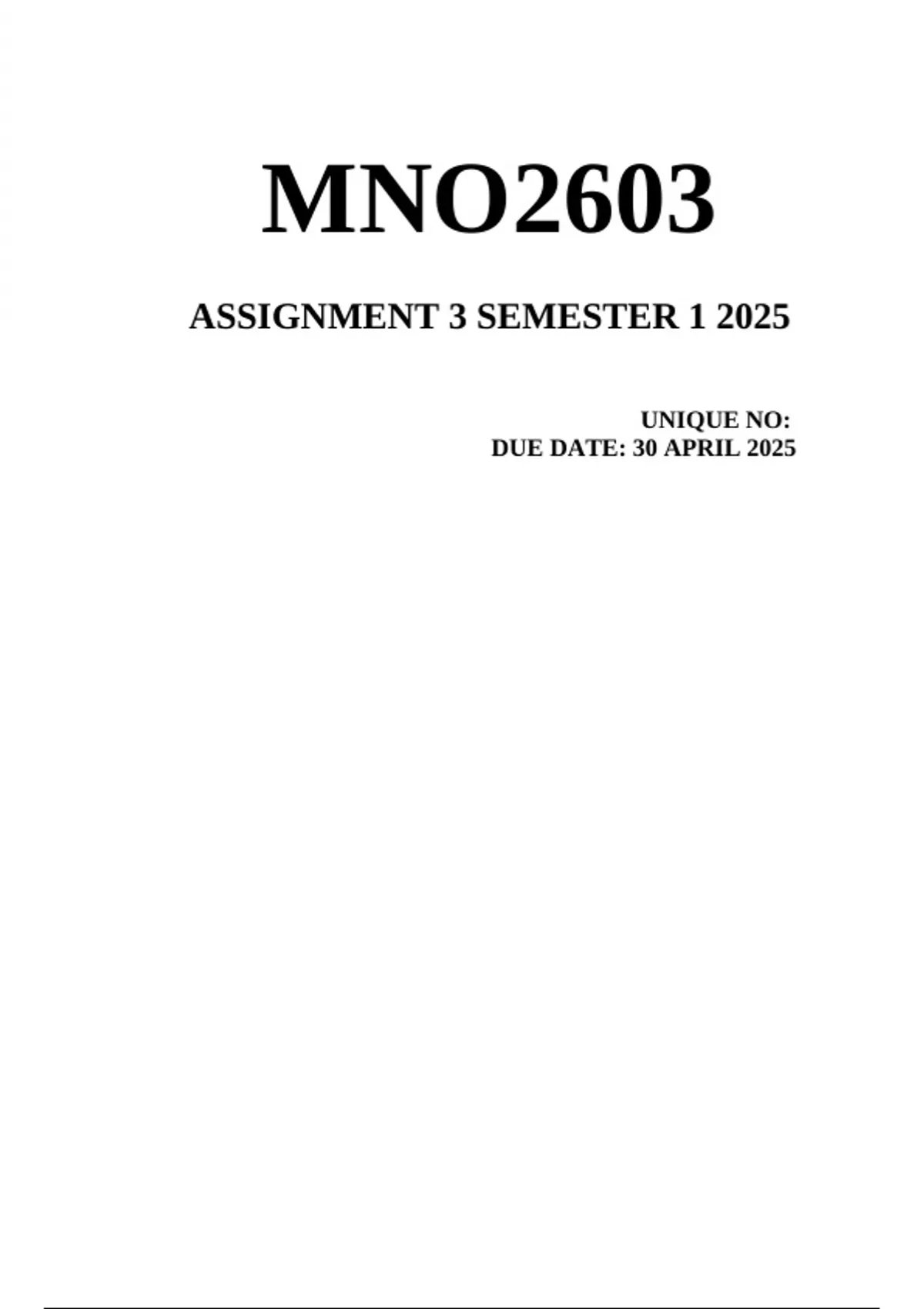 , MNO2603 – Assignment 3 (Semester 1, 2025)