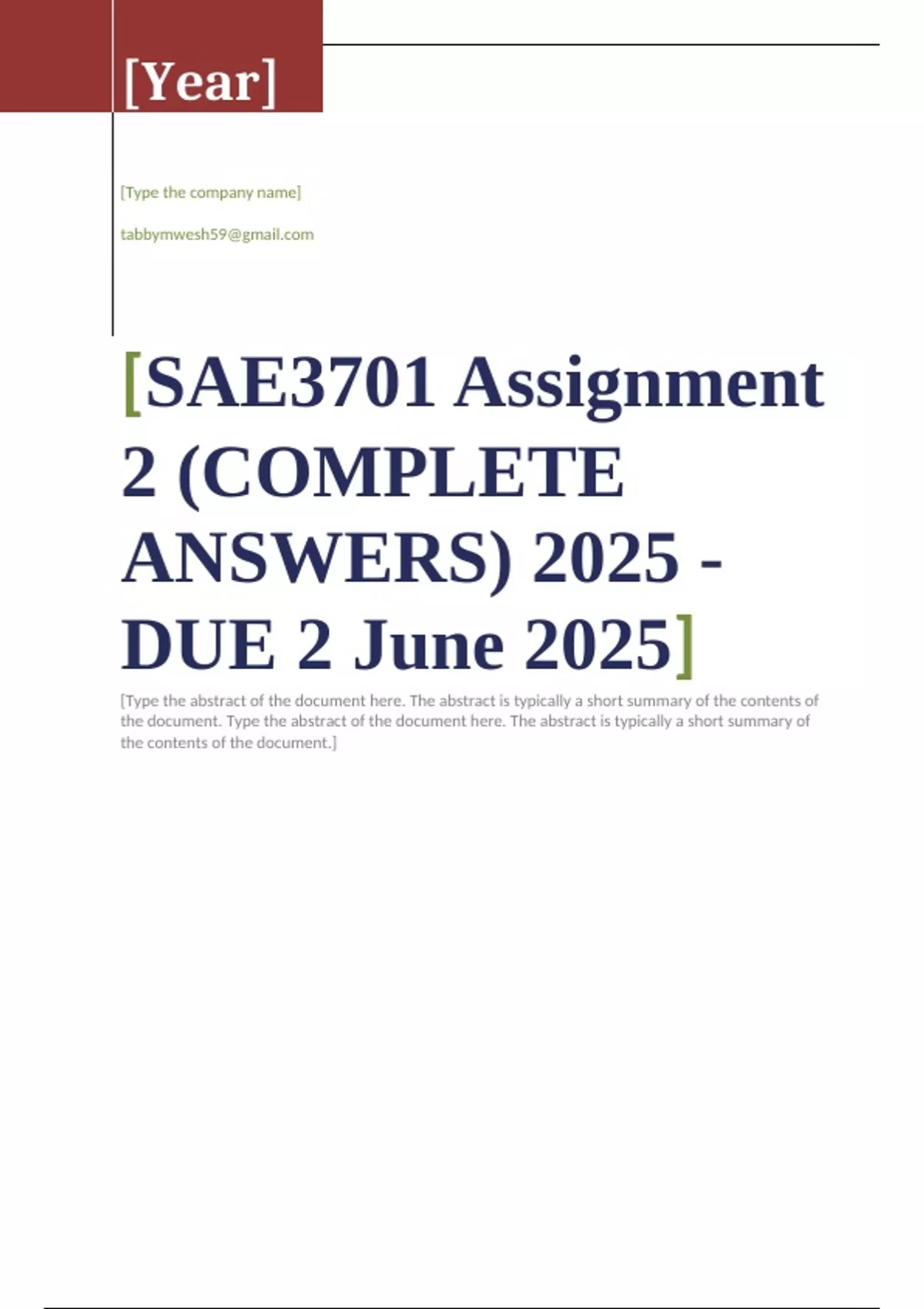 SAE3701 Assignment 2 (COMPLETE ANSWERS) 2025 - DUE 2 June 2025;