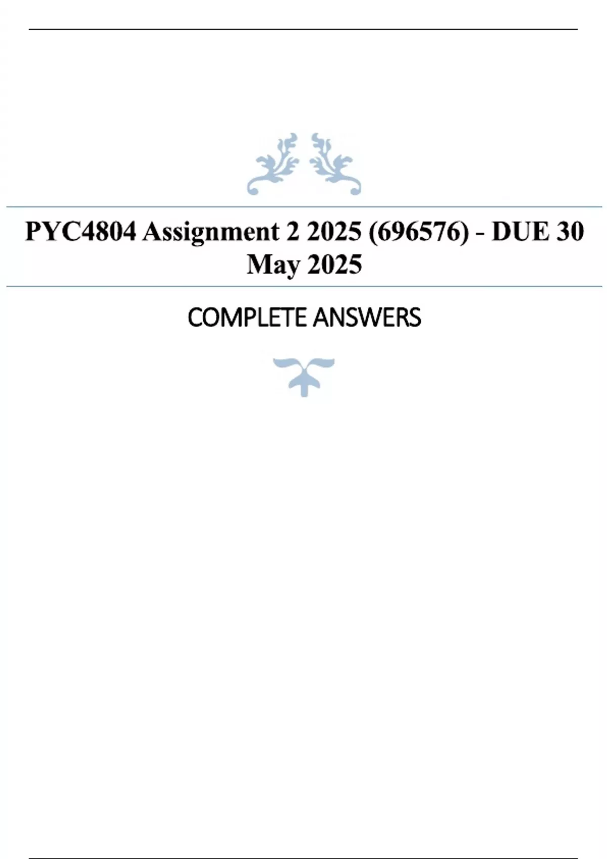 PYC4804 Assignment 2 (COMPLETE ANSWERS) 2025 (696576) - DUE 30 May 2025