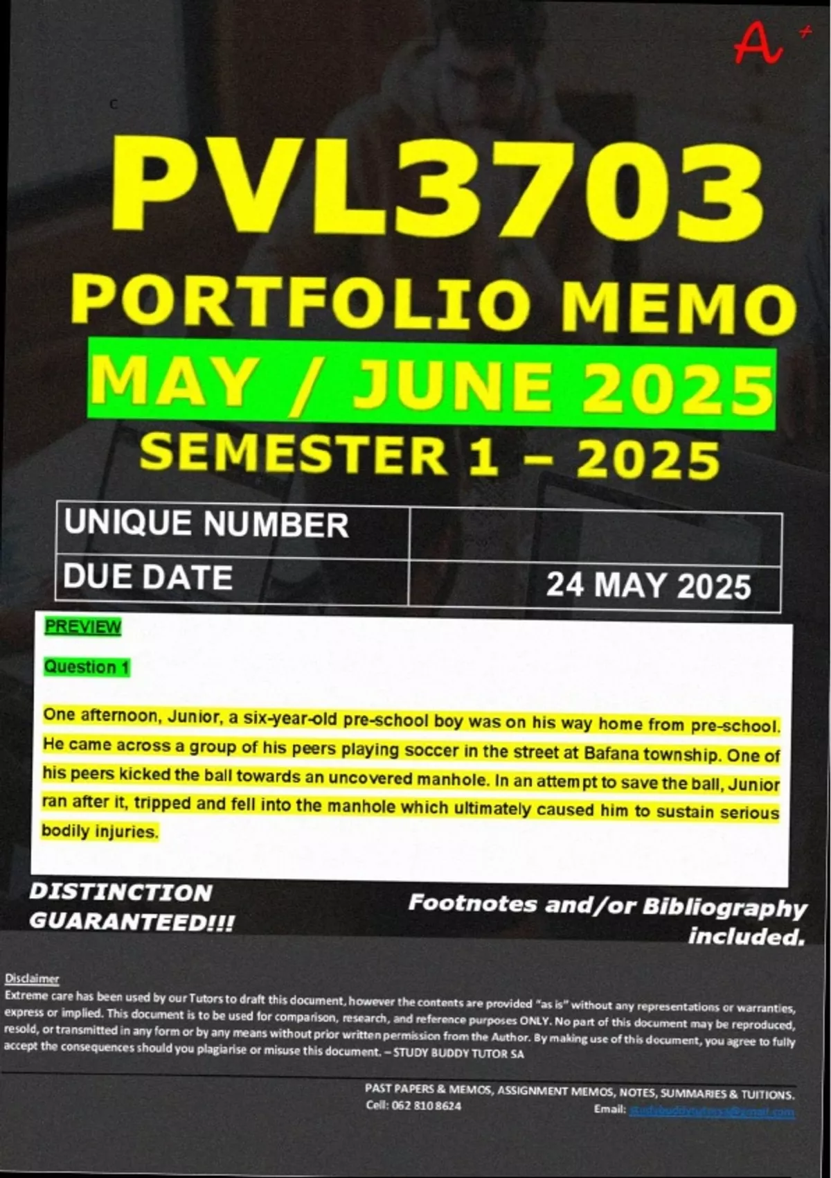 PVL3703 PORTFOLIO MEMO - MAY/JUNE 2025 - SEMESTER 1 - UNISA - DUE DATE :- 24 MAY 2025 - (DETAILED ANSWERS WITH FULL REFERENCES - DISTINCTION PASS)
