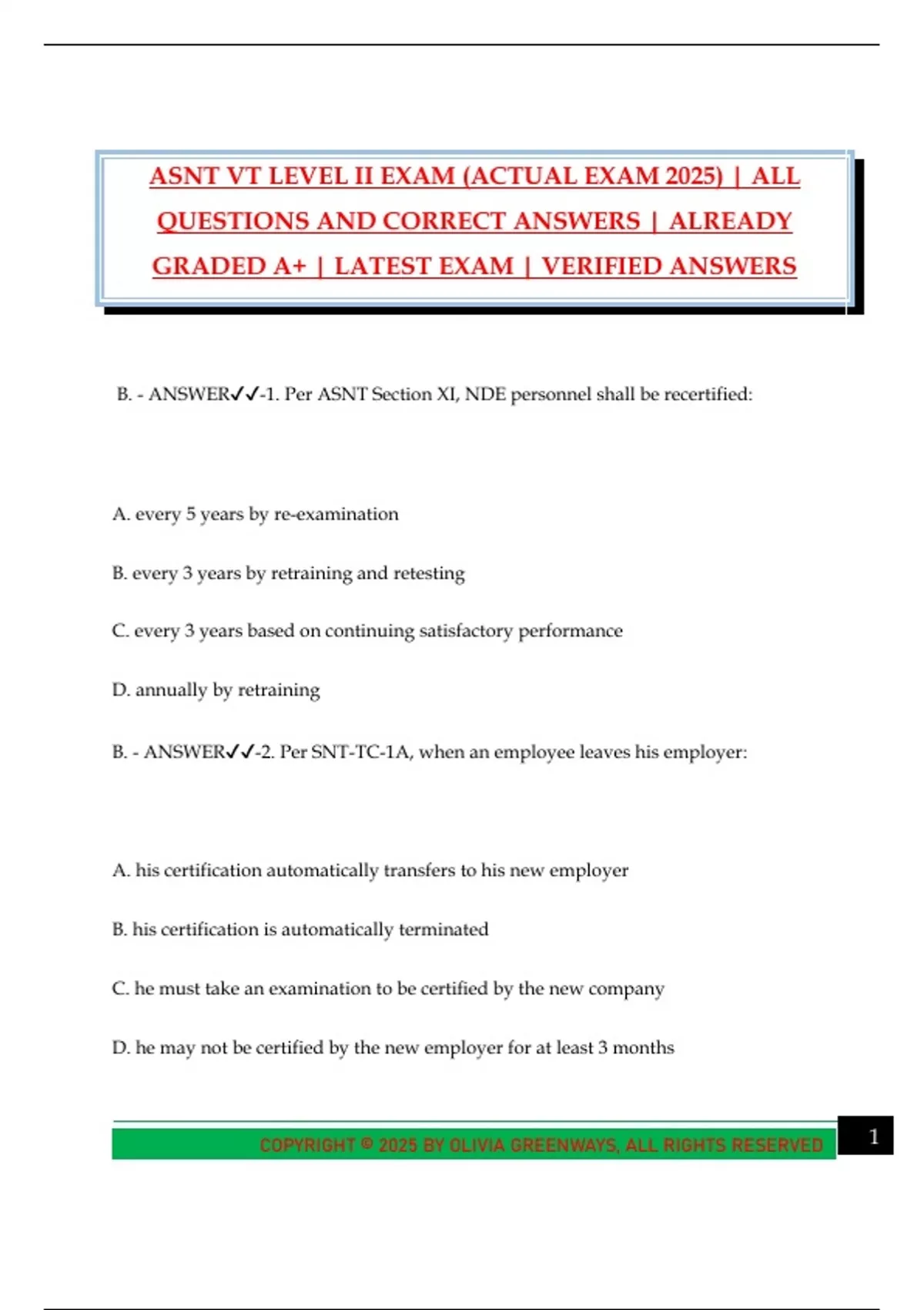 B. - ANSWER✔✔-2. Per SNT-TC-1A, when an employee leaves his employer: