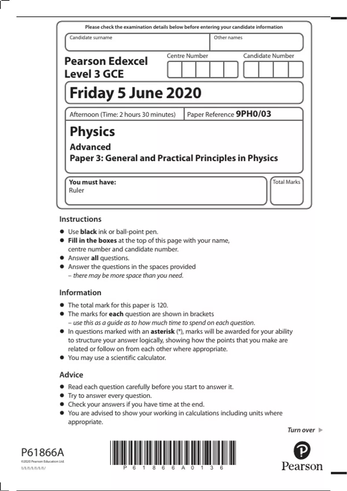 Advanced Physics Paper 1 Level 3 GCE; Edexcel-A-Level-JUNE-2020-Physics-Paper-3