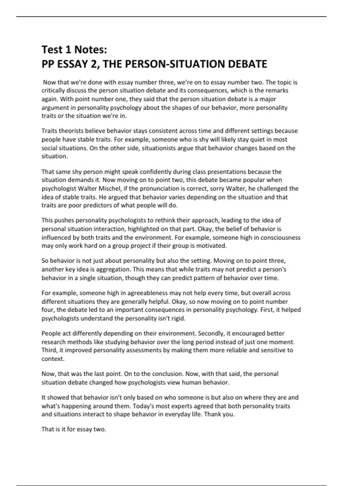 PP ESSAY 2, THE PERSON-SITUATION DEBATE