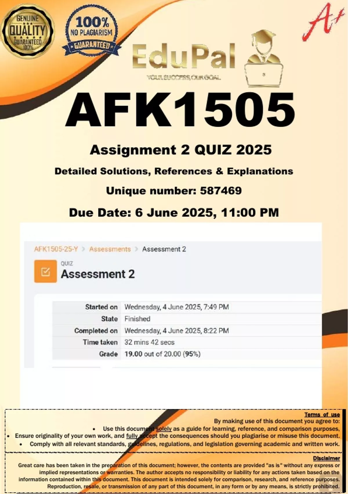 AFK1505 Assignment 2 QUIZ (COMPLETE ANSWERS) 2025 (587469) - DUE 6 June 2025