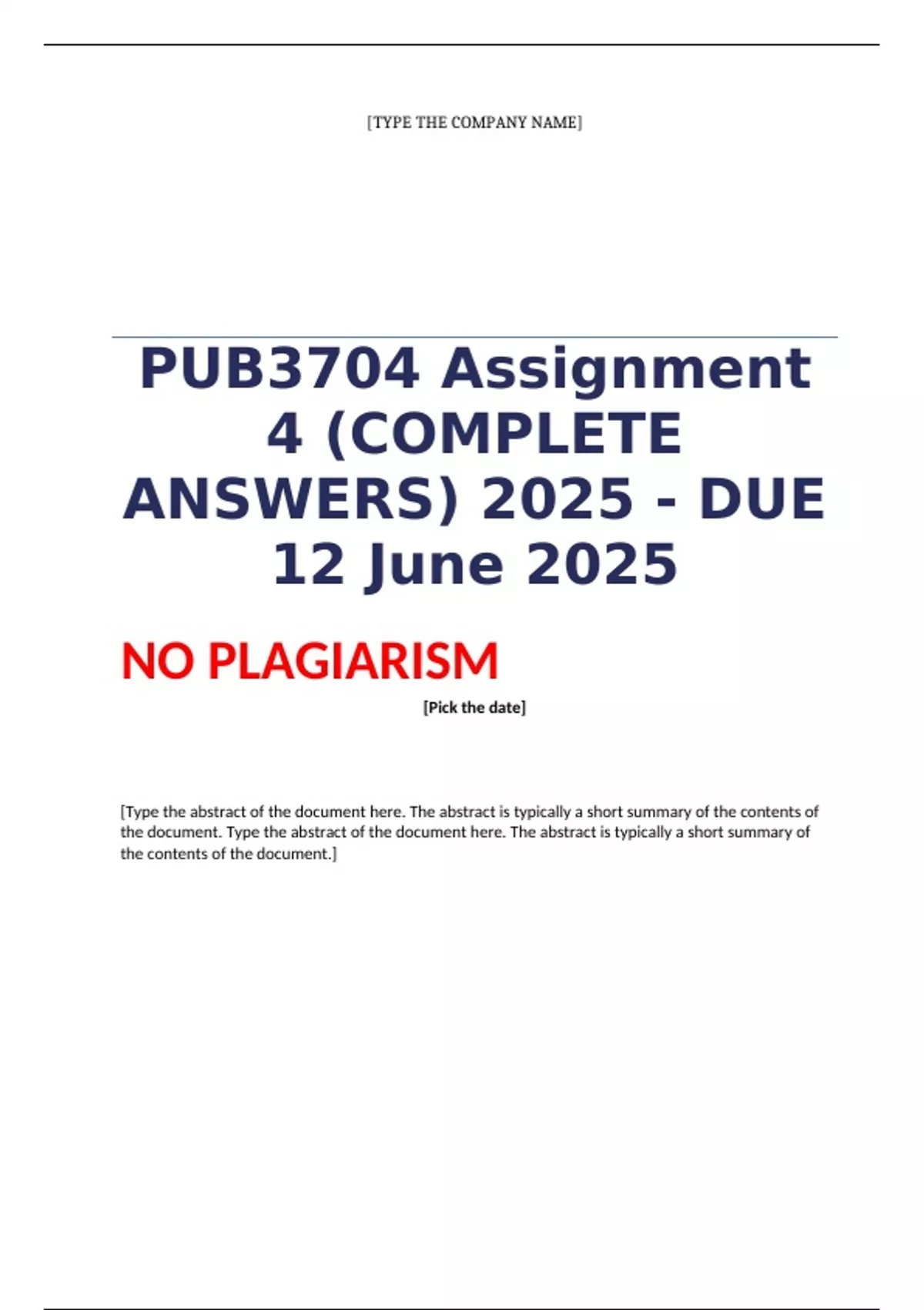 PUB3704 Assignment 4 (DETAILED ANSWERS) Semester 1 2025 -