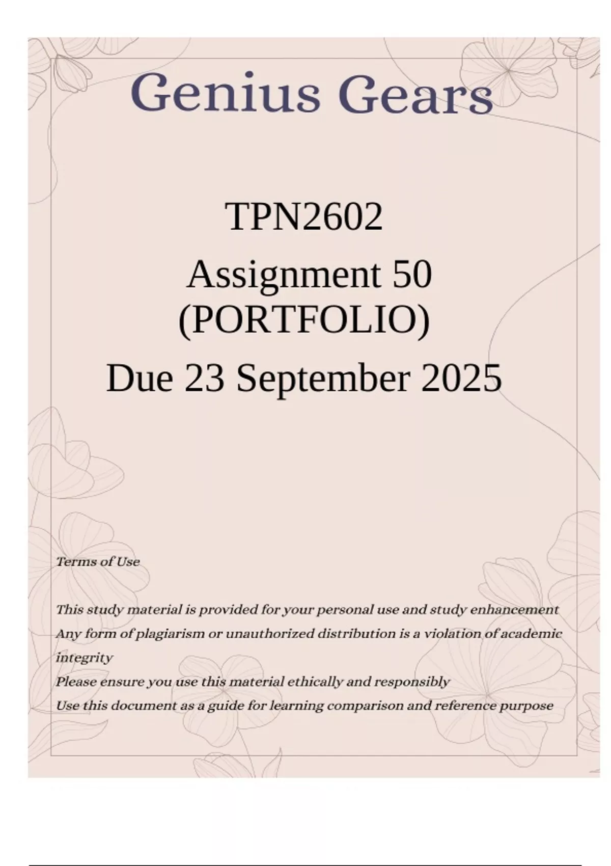 TPN2602 Assignment 50 PORTFOLIO Due 23 September 2025