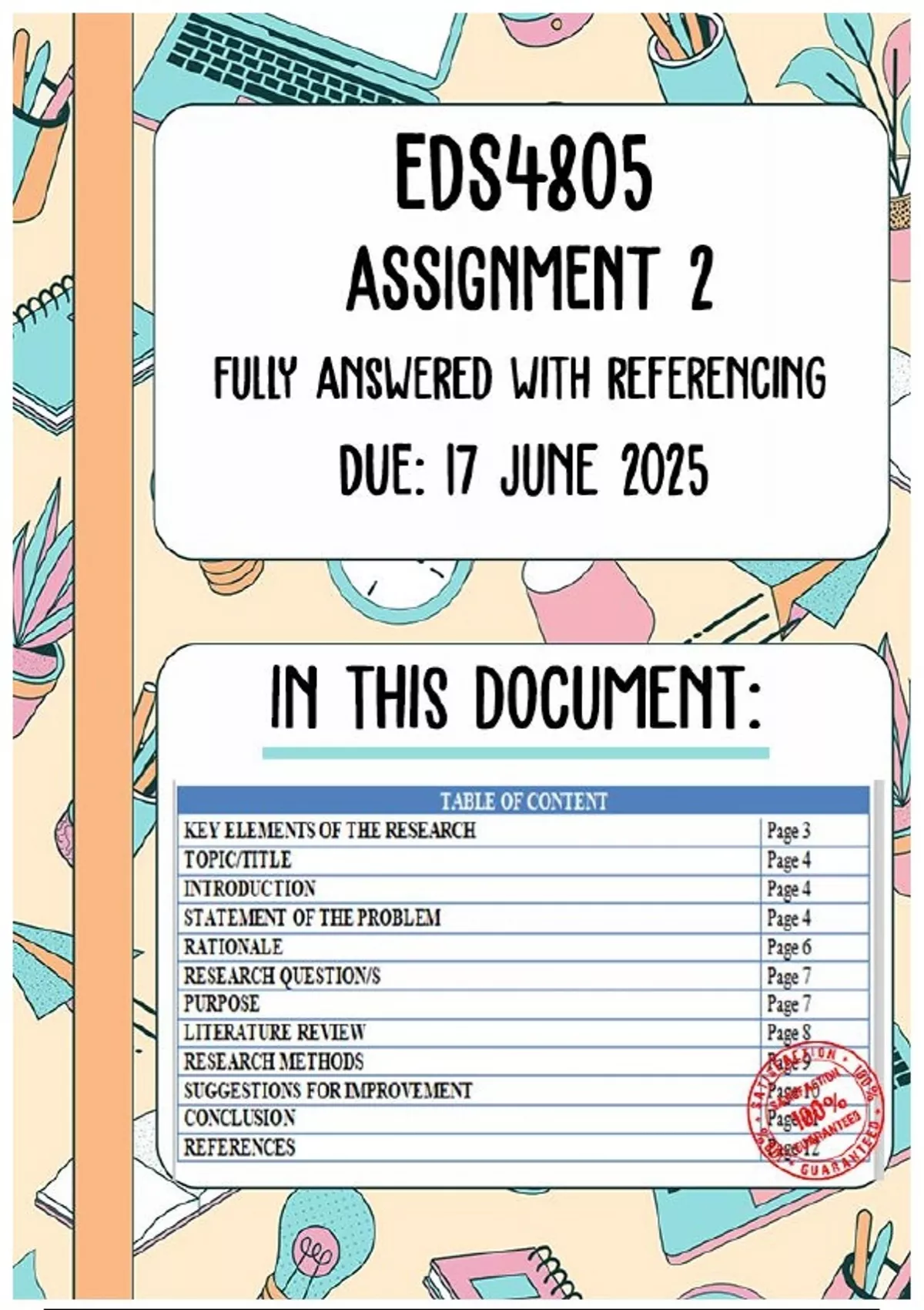 EDS4805 Assignment 2 Memo | Due 17 June 2025. All questions fully answered. The details of the article are as follows: language disorders are classified as communication disorders. i. Identify the key elements of research in this article. ii. Explain how the following research elements are dealt with in the article: • Title • Statement of the problem • Rationale • Research question (main question and sub-questions) • Purpose (aim and objective/s) • Literature (relevance of the literature) • Research methods iii. Make some suggestions on how the article could be improved.