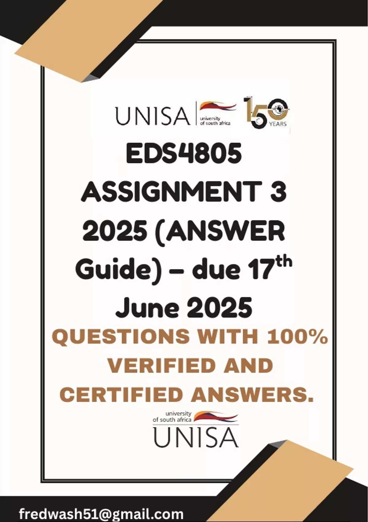 EDS4805 ASSIGNMENT 3 2025 (ANSWER Guide) – due 17th June 2025