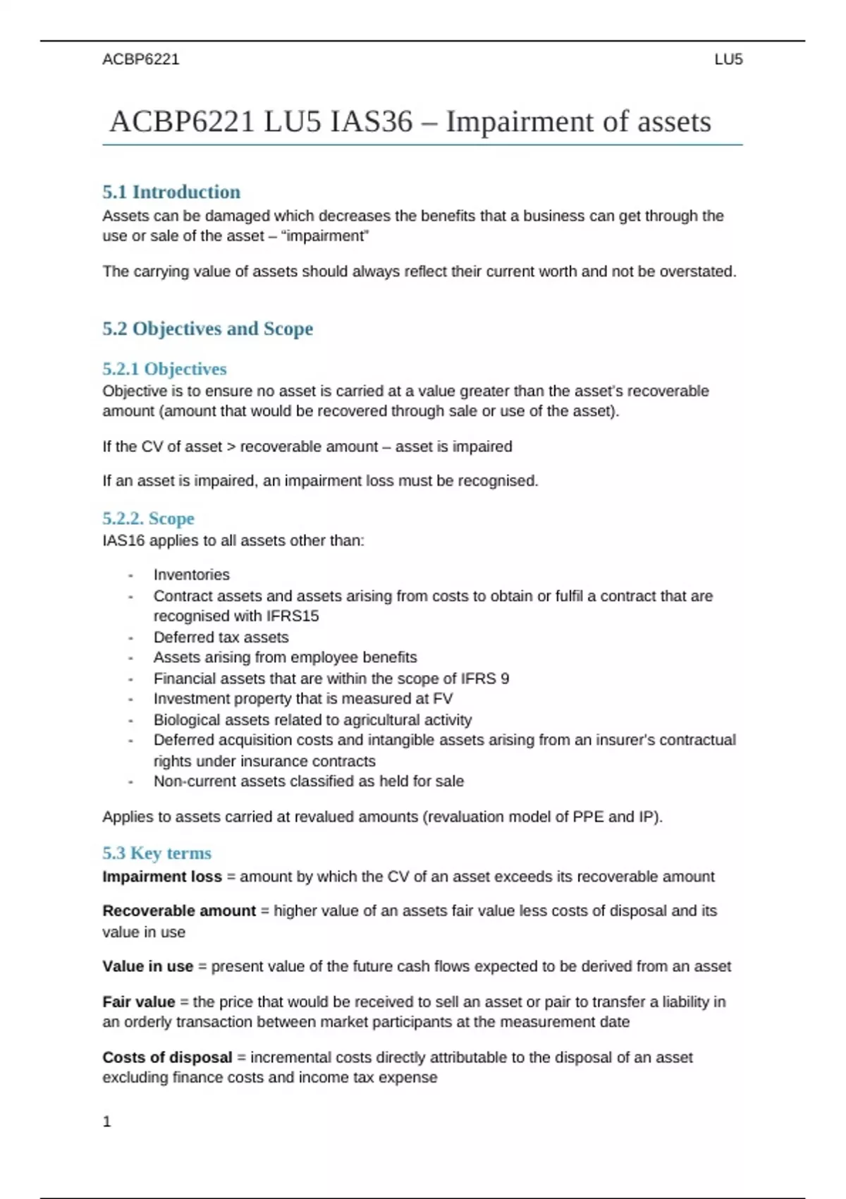 ACBP6221 LU5 IAS36 – Impairment of assets
