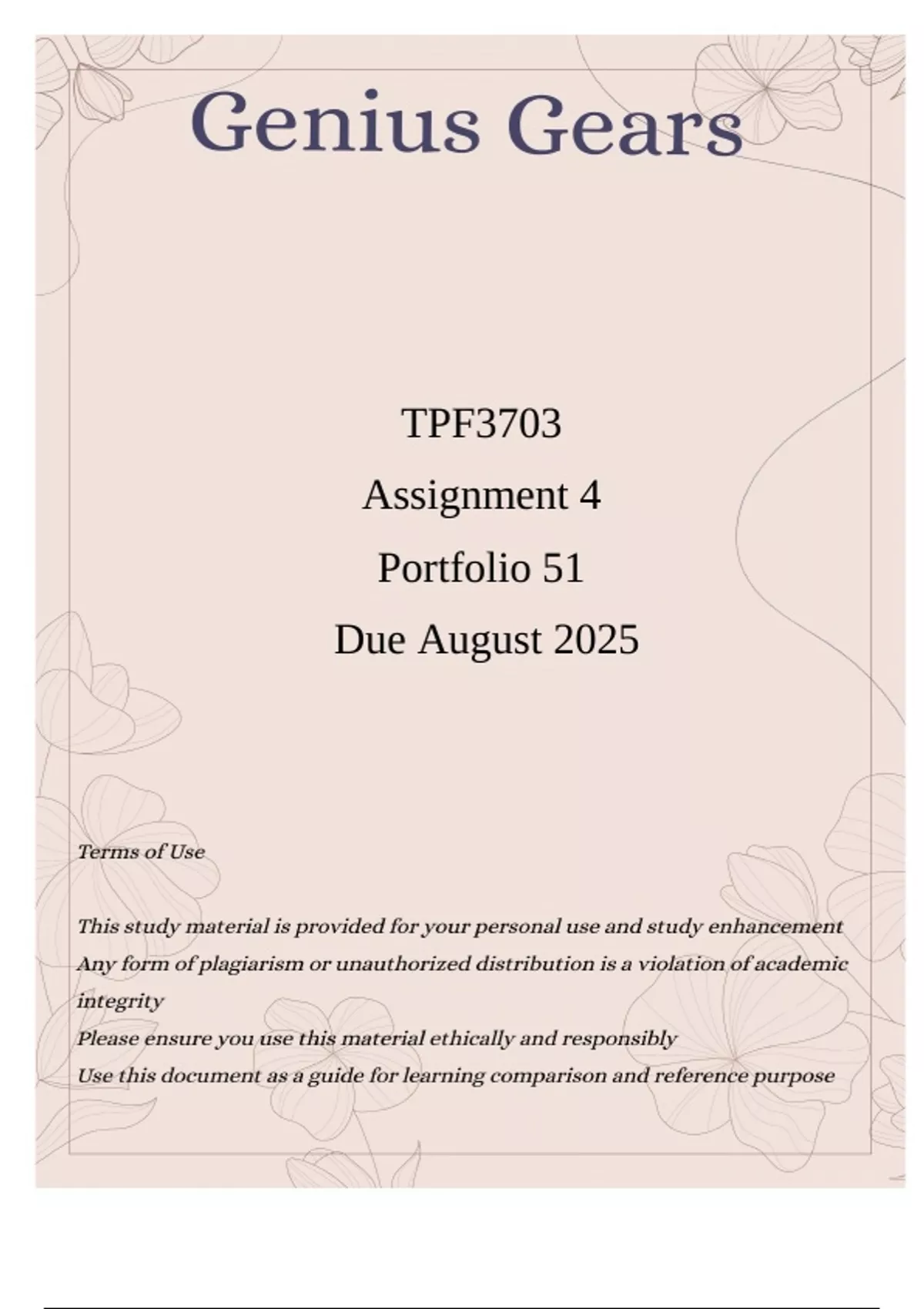 TPF3703 Assignment 4 (Exceptional Answers) Portfolio 51 Due August 2025