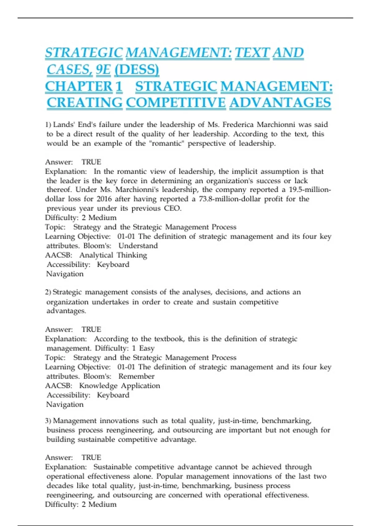 Test Bank Strategic Management Text and Cases 9th Edition Dess (Chapter 1-12)Test Bank Strategic Management Text and Cases 9th Edition Dess (Chapter 1-12)Test Bank Strategic Management Text and Cases 9th Edition Dess (Chapter 1-12)Test Bank Strategic Management Text and Cases 9th Edition Dess (Chapter 1-12)Test Bank Strategic Management Text and Cases 9th Edition Dess (Chapter 1-12)Test Bank Strategic Management Text and Cases 9th Edition Dess (Chapter 1-12)Test Bank Strategic Management Text and Cases 9th Edition Dess (Chapter 1-12)