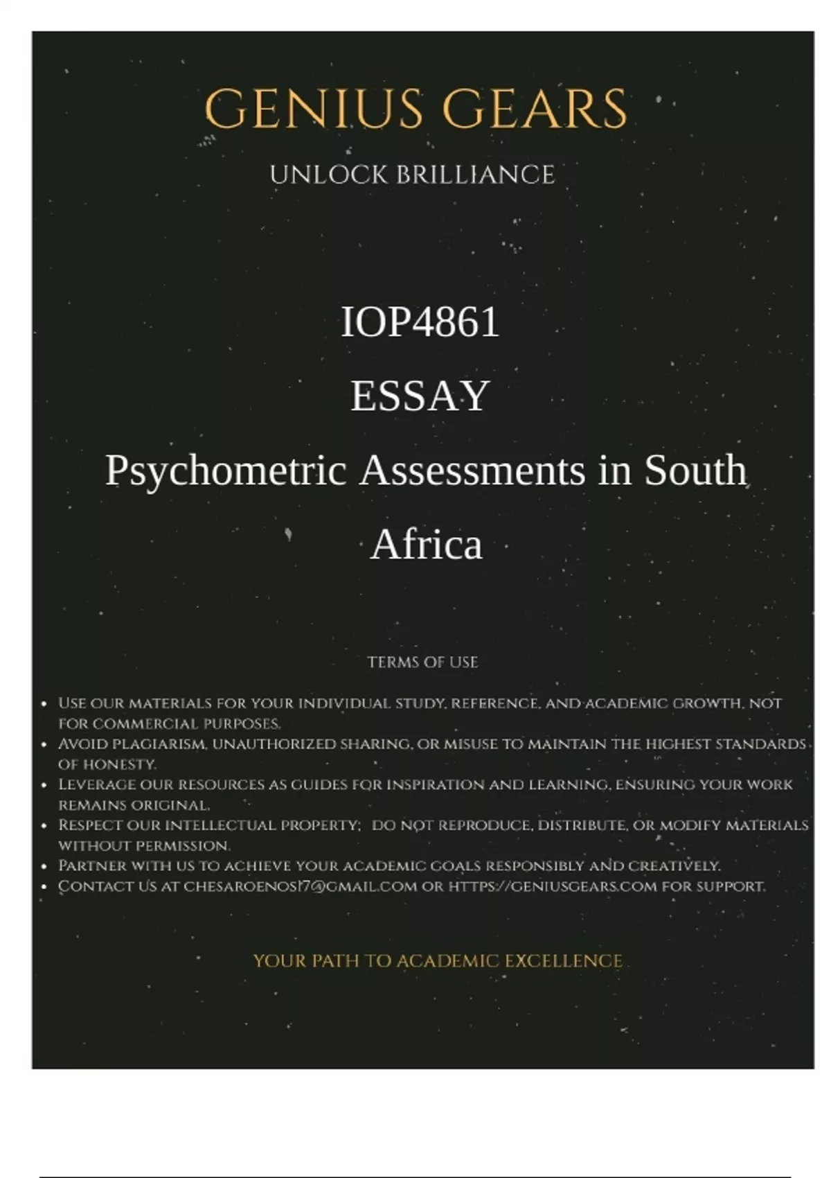 Get your hands on the ultimate study resource for IOP4861 Psychometric Assessments in South Africa (Exceptional Answers) which is 100% exam-ready assignment with expert-verified answers, detailed explanations, and trusted references. Fully solved and easy to understand. Secure your academic success Now!
