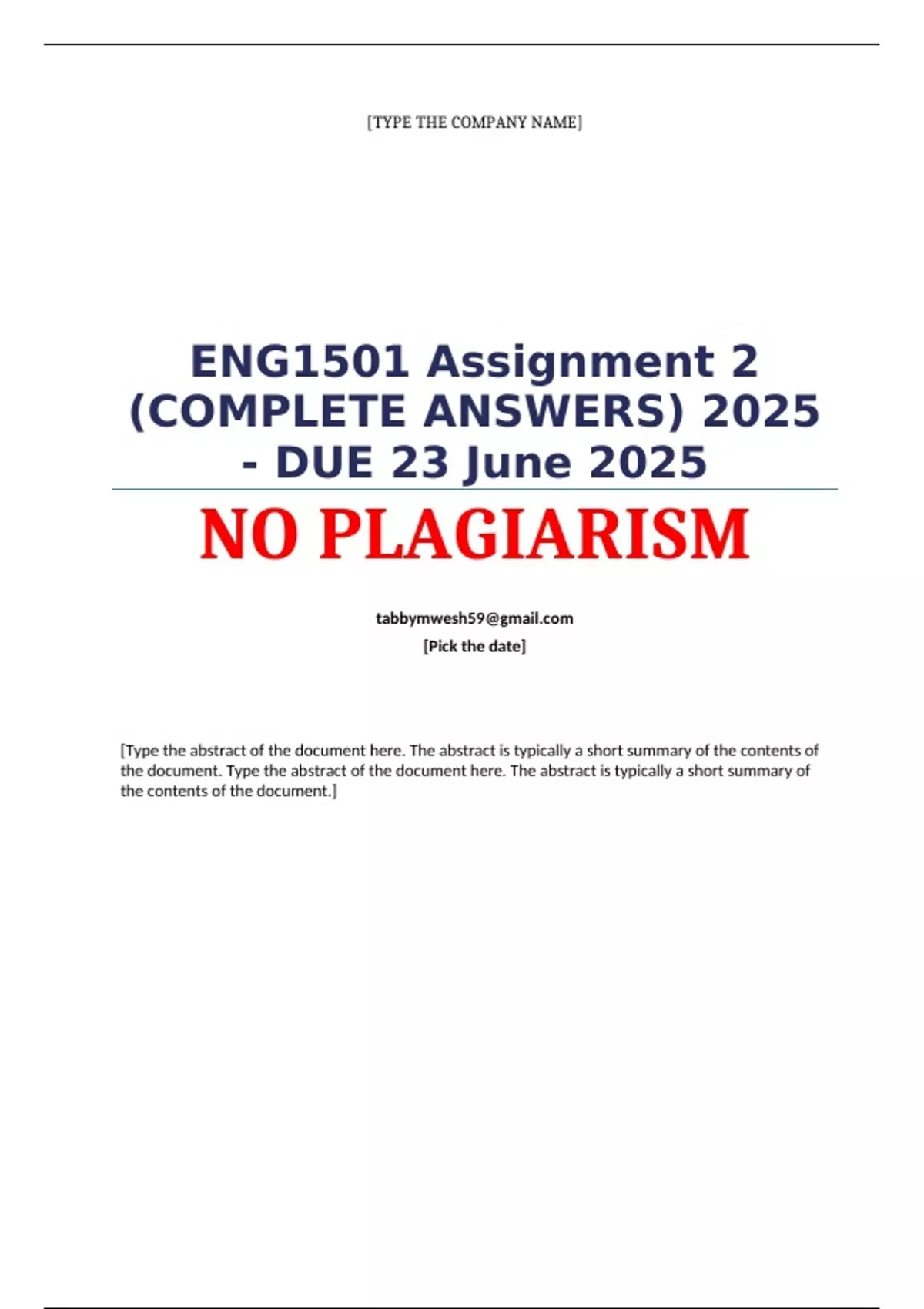 ENG1501 Assignment 2 (COMPLETE ANSWERS) 2025 - DUE 23 June 2025;