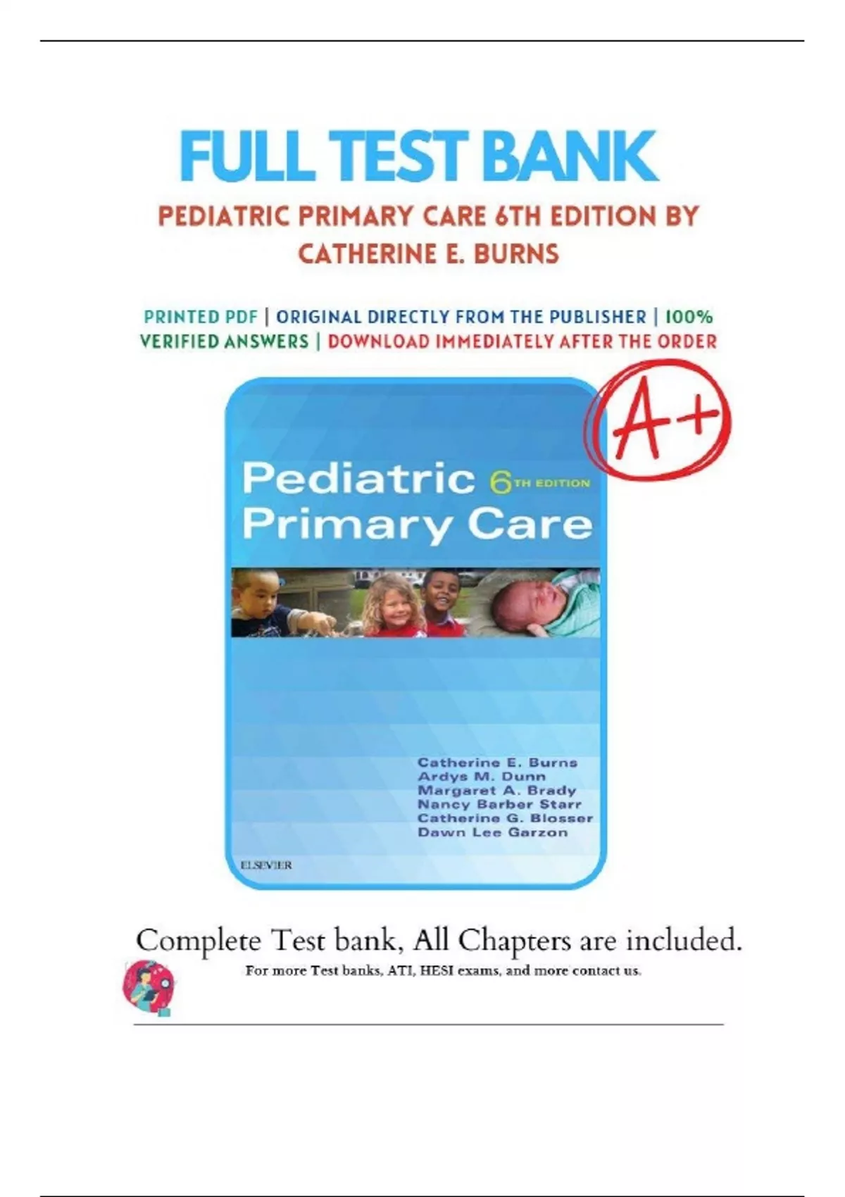 Test Bank for Pediatric Primary Care 6th Edition By Catherine E. Burns & Ardys M. Dunn | All Chapters LATEST