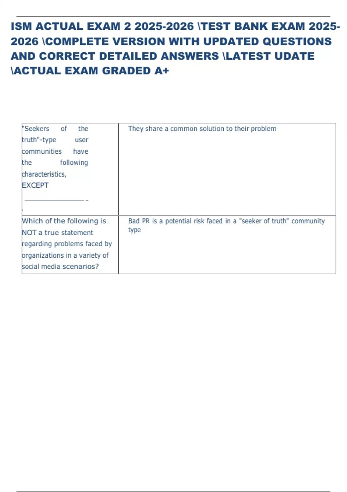 ISM ACTUAL EXAM 2 2025-2026 \TEST BANK EXAM 2025-