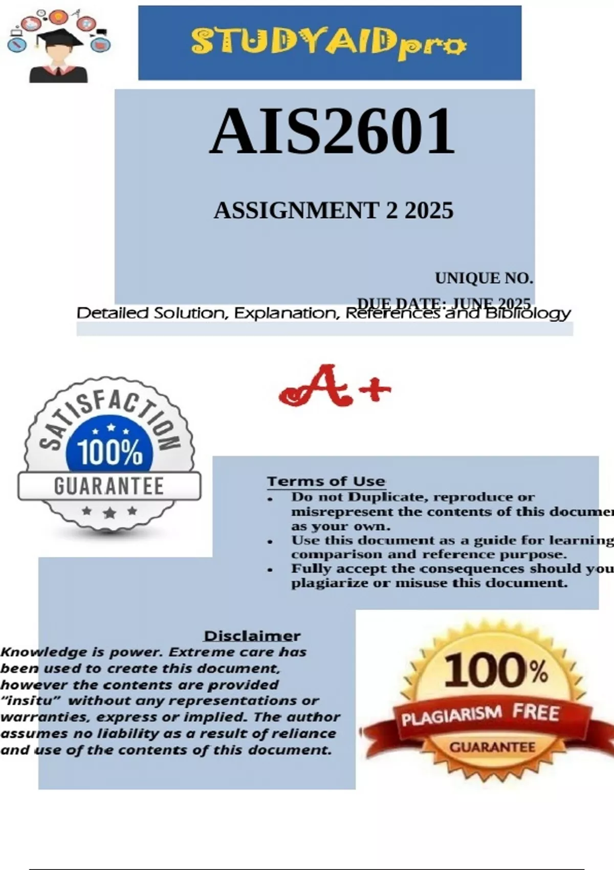 AIS2601 Assignment 2 2025; 100% TRUSTED workings with detailed Answers for A+ Grade.