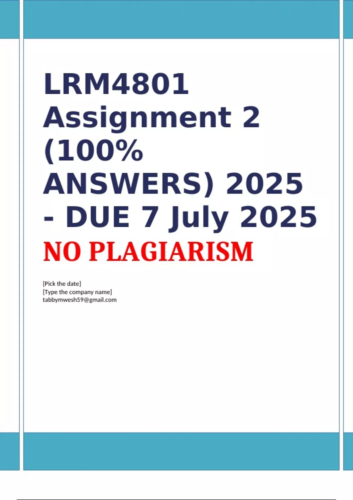 LRM4801 Assignment 2 (100% ANSWERS) 2025 - DUE 7 July 2025 Ubuntu