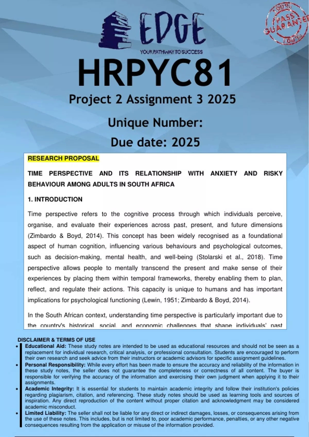 future—relate to anxiety and risky behaviour among South African adults. By using