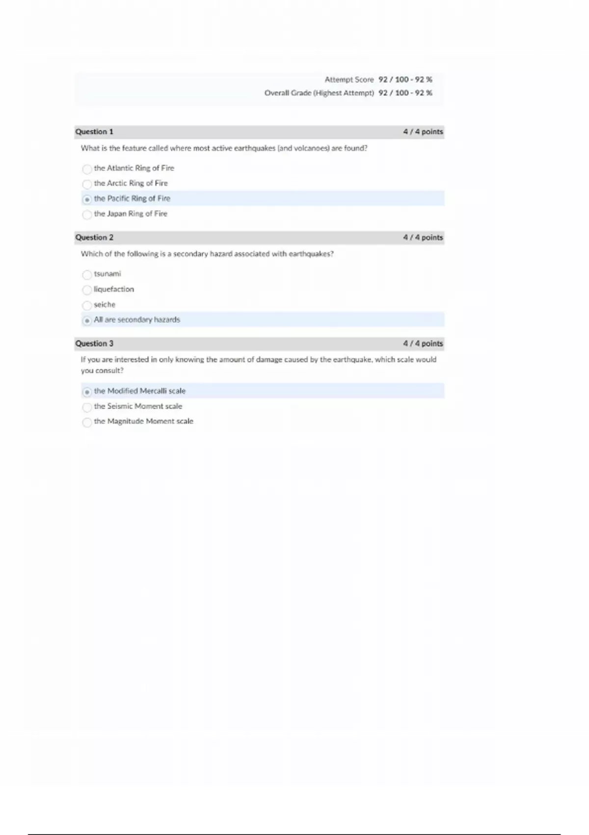 Overall Grade (Highest Attempt) 92 /100 - 92 %