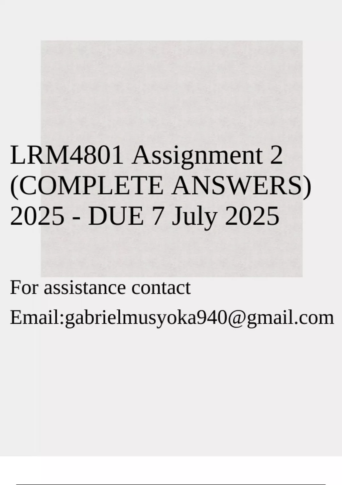 LRM4801 Assignment 2 (COMPLETE ANSWERS) 2025 - DUE 7 July 2025