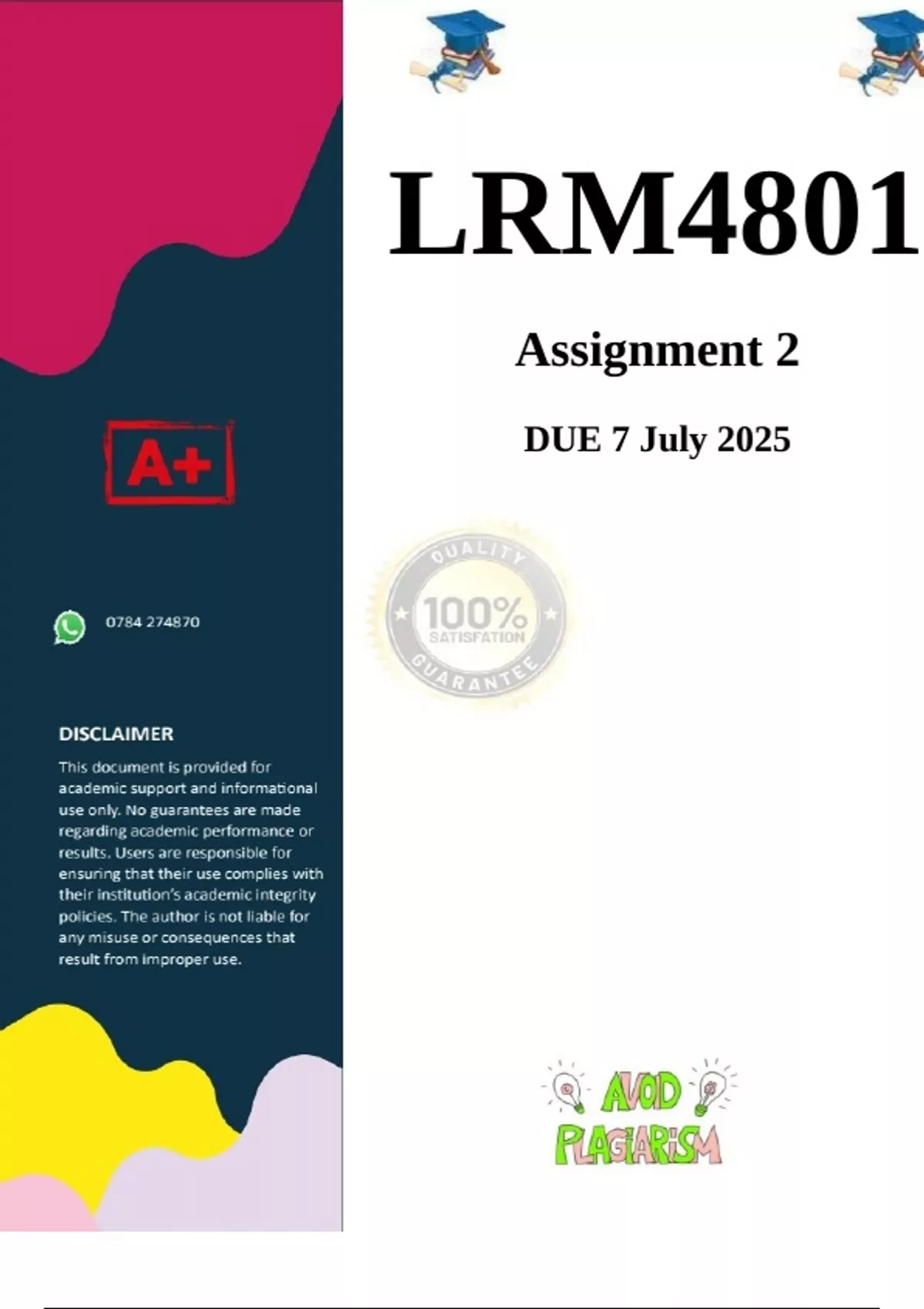 LRM4801 Assignment 2 (COMPLETE ANSWERS) - DUE 7 July 2025 100% Answered