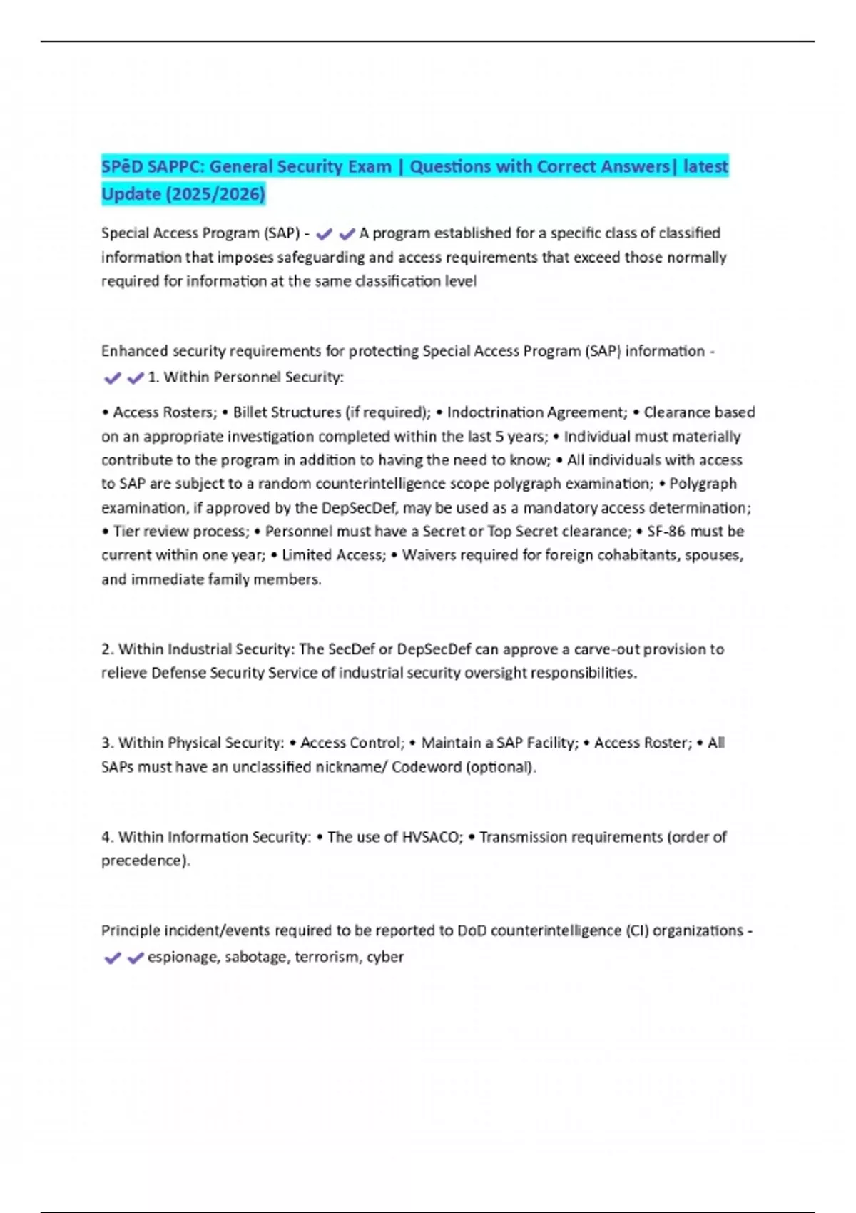 SPēD SAPPC: General Security Exam | Questions with Correct Answers| latest Update (2025/2026)