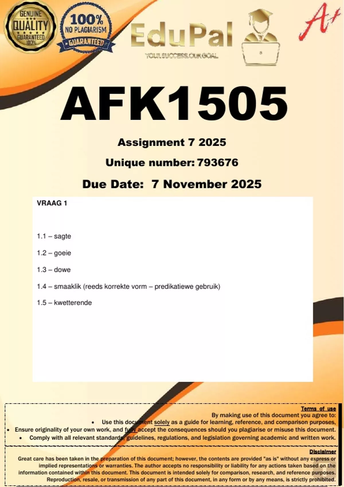 Ensure originality of your own work, and fully accept the consequences should you plagiarise or misuse this document.