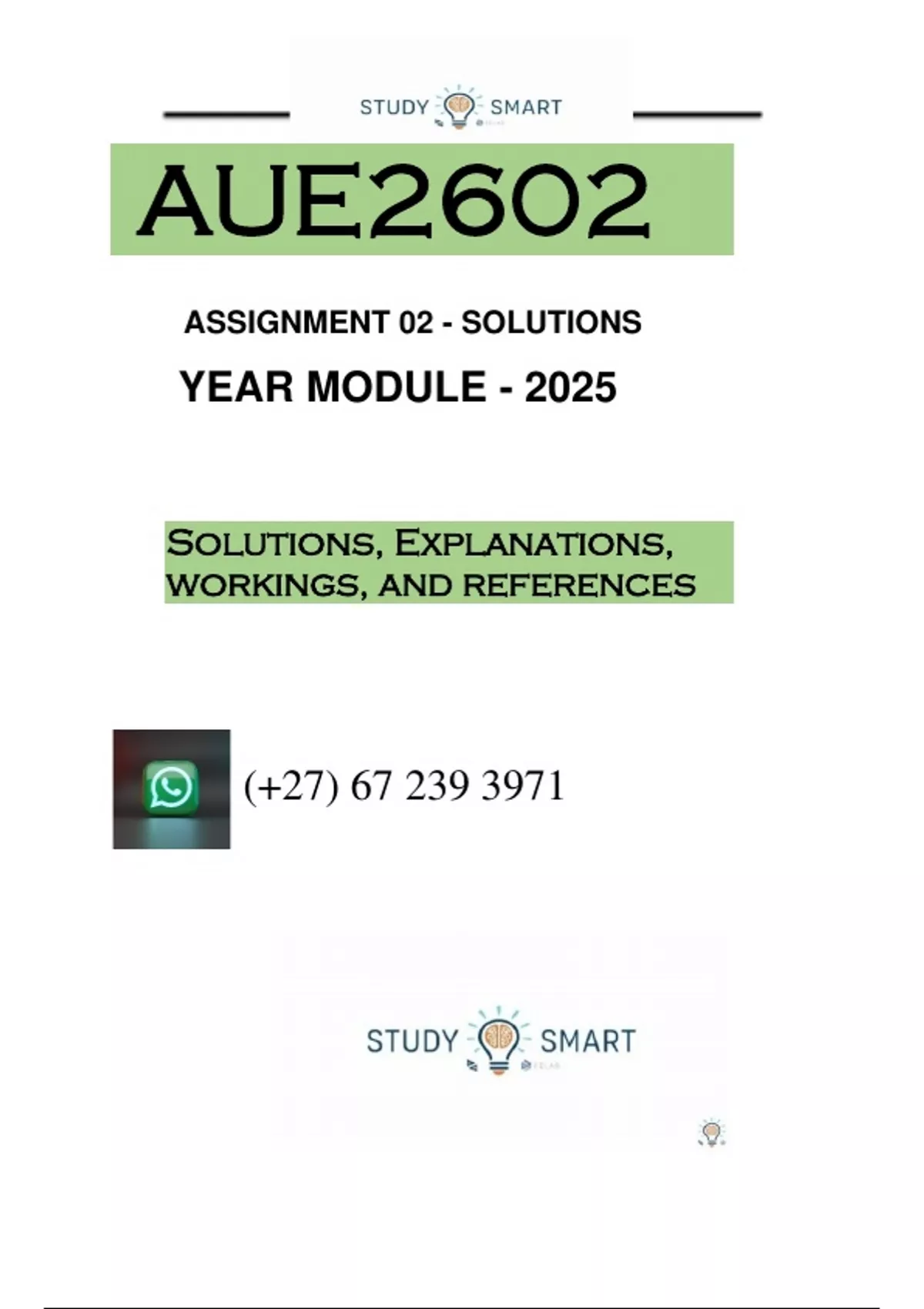 AUE2602 ASSIGNMENT 2 (QUESTIONS AND ANSWERS) YEAR MODULE 2025