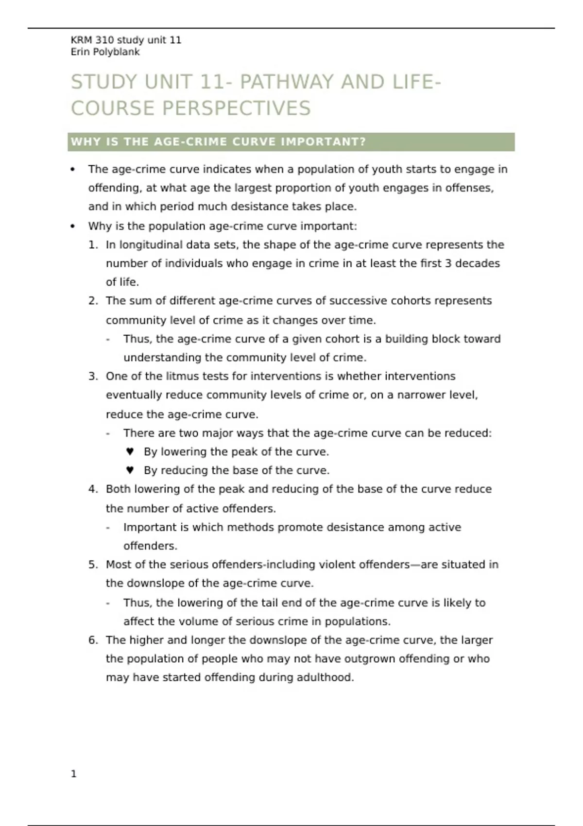 1. In longitudinal data sets, the shape of the age-crime curve represents the