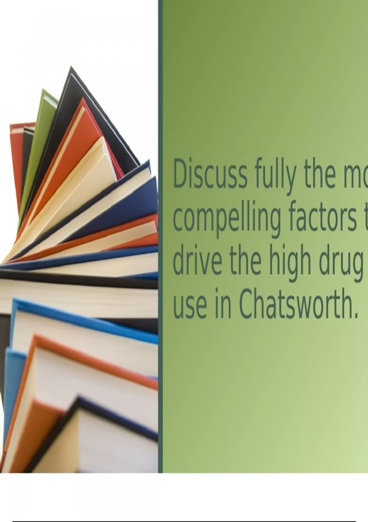 factors that drive high drug abuse in the Chatsworth area. There are several types of drugs tha